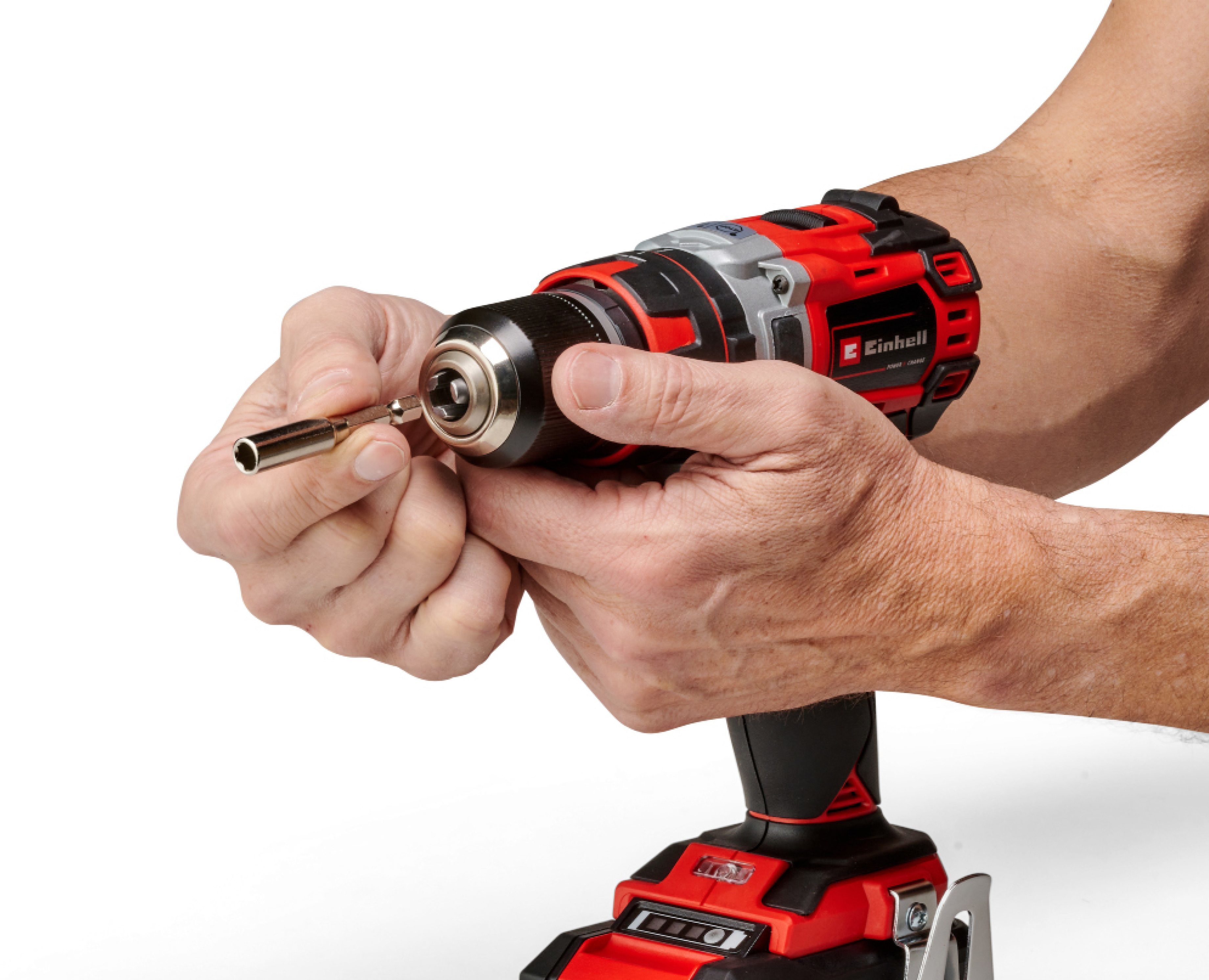 Шуруповерт є пристроєм сімейства Einhell Power X-Change. Акумулятор і зарядний пристрій Power X-Change можуть використовуватися для всіх пристроїв сімейства Power X-Change. Безщітковий мотор з крутним моментом 50 Нм забезпечує користувачів високою потужністю під час свердління і загвинчування на робочому місці навколо будинку, в майстерні та гаражі. Ударний механізм забезпечує необхідну потужність при бурінні у твердих, крихких матеріалах, таких як камінь чи бетон. Для потужного і швидкого буріння акумуляторний шуруповерт має дві швидкості. Функція швидкої зупинки дозволяє швидко і легко замінювати приладдя у високоякісному металевому патроні 13 мм. Ергономічний дизайн з м'якими накладками на корпусі забезпечують комфортну роботу. Для роботи у місцях, де замало освітлення, шуруповерт має LED підсвічування робочої зони.