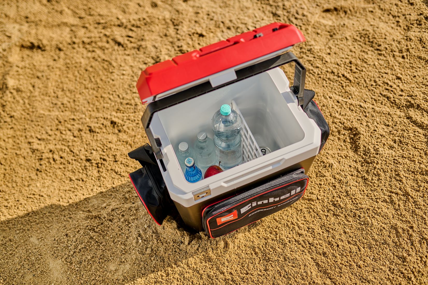 Акумуляторна холодильний бокс Einhell TE-COL 18/27 Li - Solo ідеально підходить у дорозі, будь то екскурсія чи будівництво. Чи прохолодні напої влітку, чи гаряча їжа між ними: акумуляторний холодильний бокс є обов’язковим для подорожей на відпочинок, а також для будь-якої заслуженої обідньої перерви на будівельному майданчику. Він є частиною сімейства Einhell Power X‑Change і тому може поєднуватися з будь-яким акумулятором системної. В комплекті постачаються кабелі 230 В для роботи від електромережі і 12 В для роботи від автомобільного прикурювача. Холодильний бокс автоматично вибирає режим роботи в залежності від наявного джерела живлення. Таким чином його можна попередньо охолодити вдома за допомогою розетки, а потім охолодити в дорозі за допомогою роз’єму прикурювача в автомобілі. Для роботи від 12 В охолоджувальний бокс оснащений захистом автомобільного акумулятора, який запобігає глибокому розряду акумулятора. Після цього вміст можна охолоджувати за допомогою акумулятора. Холодильний бокс має об’єм 27 літрів і може вмістити 36 банок (по 0,33 л кожна), 20 пляшок (по 0,5 л кожна) або 6 великих пляшок по 1,5 л. Для поділу холодильної камери постачається гнучкий роздільник, а також відкривачка для пляшок, вбудована в корпус. Крім того, бокс оснащений великою кишенею для аксесуарів, боковою кишенею з тримачем для акумуляторів і боковою кишенею для змінного акумулятора для збільшення часу роботи. Завдяки класу енергоефективності D, акумуляторний холодильний бокс має низьке енергоспоживання. Індикатор заряду акумулятора вбудований безпосередньо в пристрій. За допомогою центрального перемикача можна вибрати функції охолодження або підтримання тепла. За допомогою поворотного перемикача потужність охолодження можна регулювати нескінченно до 20 °C нижче відповідної температури навколишнього середовища (мінімальне охолодження до +6°C). Функцію підтримки тепла можна налаштувати на макс. 60 °C. Для зручності транспортування холодильний бокс оснащений регульованим ременем для перенесення з наплічником і великою ручкою для перенесення, яка також може тримати кришку боксу відкритою, якщо це необхідно. Акумуляторний холодильний бокс поставляється без акумулятора та зарядного пристрою.