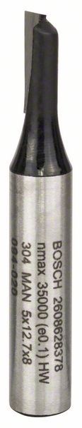Твердосплавна пазовая фреза з хвостовиком 8 мм діаметром 5 мм, робочою довжиною 12,7 мм та загальною — 51 мм — робоча насадка до вертикально-фрезерних машин. З одним лезом ця фреза філігранно вирізає невеликі пази під з'єднання, декоративні виїмки та шліци для прокладки ущільнювачів у деревині та деревних матеріалах. Нею зручно обробляти предмети та деталі будь-якої конфігурації.