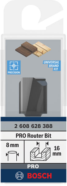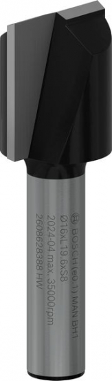 Твердосплавна пазовая фреза з хвостовиком 8 мм діаметром 13 мм, робочою довжиною 20 мм та загальною — 51 мм — робоча насадка до вертикально-фрезерних машин. З двома ріжучими кромками ця фреза філігранно вирізає невеликі пази під з'єднання, декоративні виїмки та шліци для прокладки ущільнювачів у деревині, листових, полімерних та абразивних матеріалах, наприклад, Corian®. Нею зручно обробляти предмети та деталі будь-якої конфігурації.