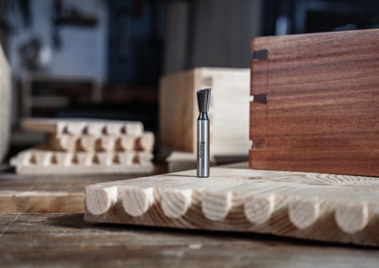Фреза оснащена хвостовиком 8 мм для надійної фіксації у вертикальних фрезерних машинах. Два ріжучі леза гарантують плавне різання та чисту поверхню зʼєднання. Інструмент підходить для обробки як мʼяких, так і твердих порід деревини при серійному або індивідуальному виробництві.