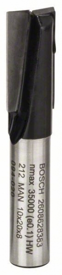 Твердосплавна пазовая фреза з хвостовиком 8 мм діаметром 9 мм, робочою довжиною 20 мм та загальною — 51 мм — робоча насадка до вертикально-фрезерних машин. З двома ріжучими кромками ця фреза філігранно вирізає невеликі пази під з'єднання, декоративні виїмки та шліци для прокладки ущільнювачів у деревині, листових, полімерних та абразивних матеріалах, наприклад, Corian®. Нею зручно обробляти предмети та деталі будь-якої конфігурації.