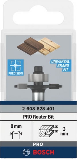 Фреза оснащена хвостовиком 8 мм для надійної фіксації у вертикальних фрезерних машинах. Тонкий диск дозволяє акуратно обробляти вузькі кромки. Наявність шарикопідшипника дає можливість вести інструмент без використання направляючих шаблонів.