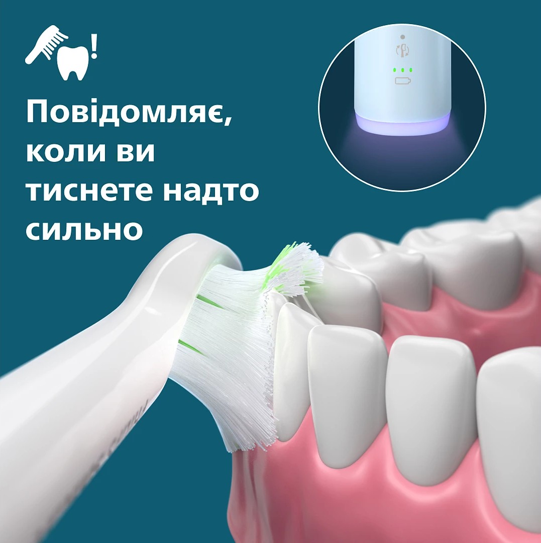 Звукова зубна щітка Philips Sonicare серії 6100. Ретельне чищення все ще може бути щадним для чутливих зубів і ясен, видаляючи в 10 разів більше зубного нальоту. Технологія Sonicare наступного покоління забезпечує потужне, але дбайливе чищення навіть у важкодоступних місцях.