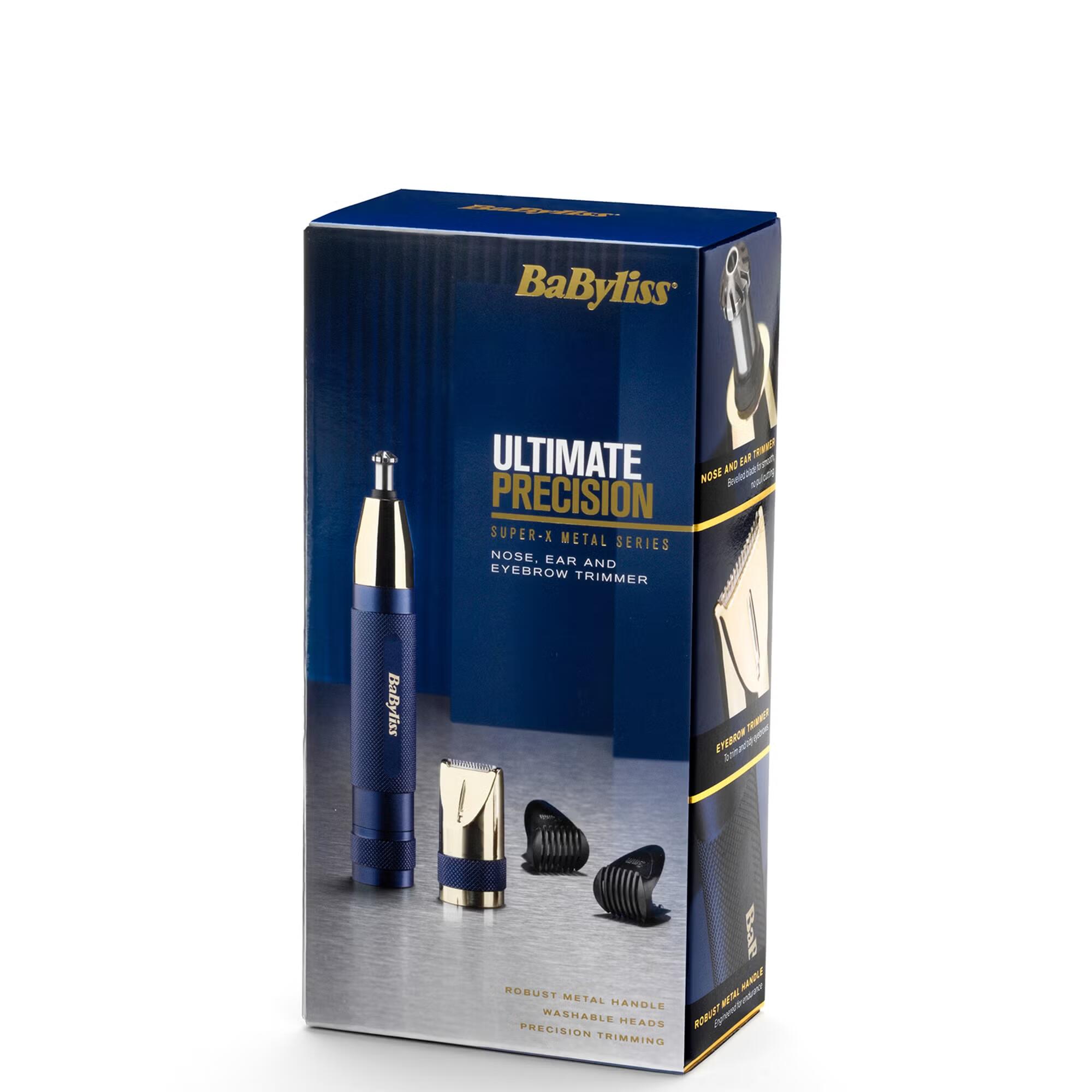 BaByliss Триммер для бровей, усов, носа, ушей, 1xAA, насадок-3, чехол, сталь, синий