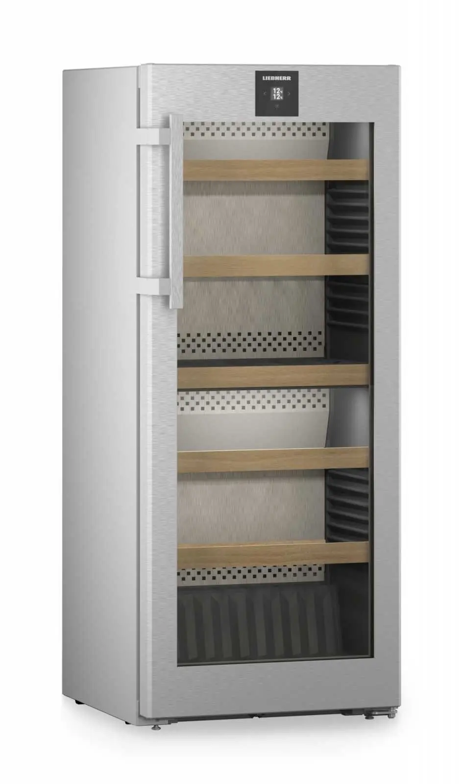 Якщо зберігати вино за неправильної температури, воно може зіпсуватися й втратити свої якості. Точна електронна система контролю постійно підтримує потрібну температуру в кліматичній винній шафі Liebherr. Температуру можна встановити в діапазоні від +5 °C до +20 °C. Поточний показник відображається на дисплеї.