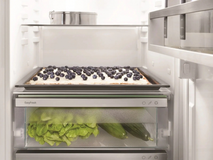 Завдяки вбудованим направляючим та обмежувачу висування, відділення EasyFresh легко відкривається й зачиняється. Ще одна перевага: конструкція направляючих рейок гарантує щільнысть закриття відділення. Тому охолоджені продукти завжди зберігаються в оптимальних умовах.