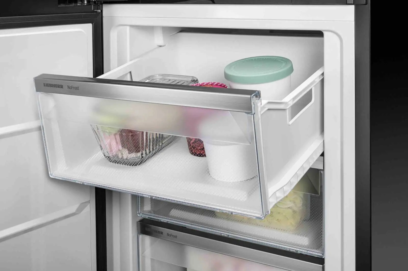 SpaceBox відкриває свободу організації внутрішнього простору морозильної камери Liebherr. Високий контейнер (250 мм) дозволить вам з легкістю розмістити в ньому багатоярусні торти, габаритні продукти чи просто велику кількість різноманітних запасів.