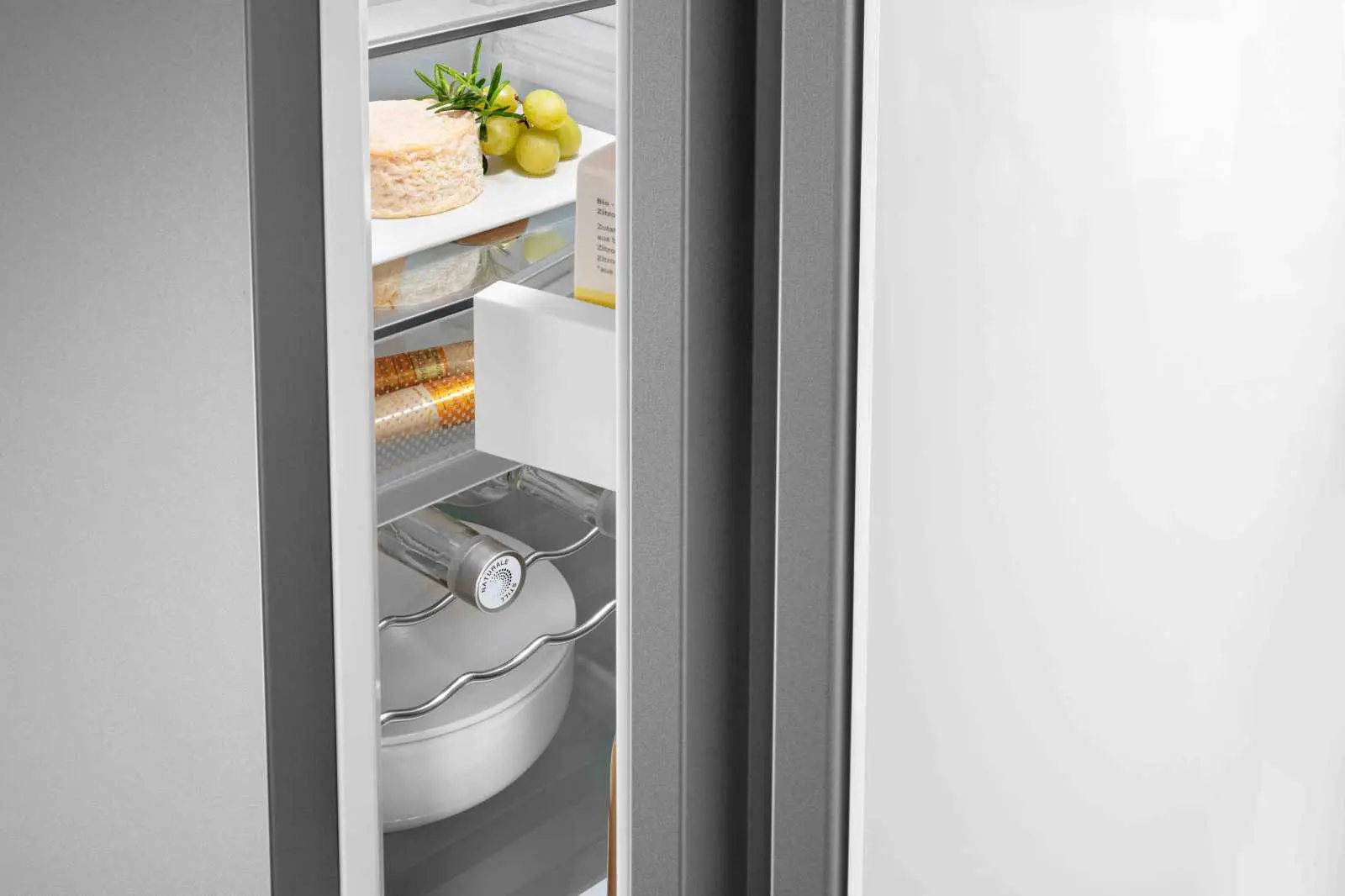 VarioSafe — це найкраще місце для зберігання дрібних продуктів, скляних баночок, стаканчиків чи тюбиків у вашому Liebherr. Цей контейнер допомагає створити додатковий порядок всередині холодильної камери. Просто помістіть його на тому рівні, на якому забажаєте, відрегулюйте за висотою та насолоджуйтеся.