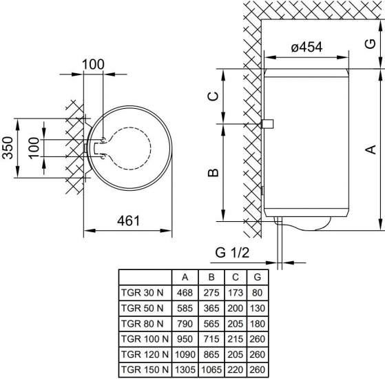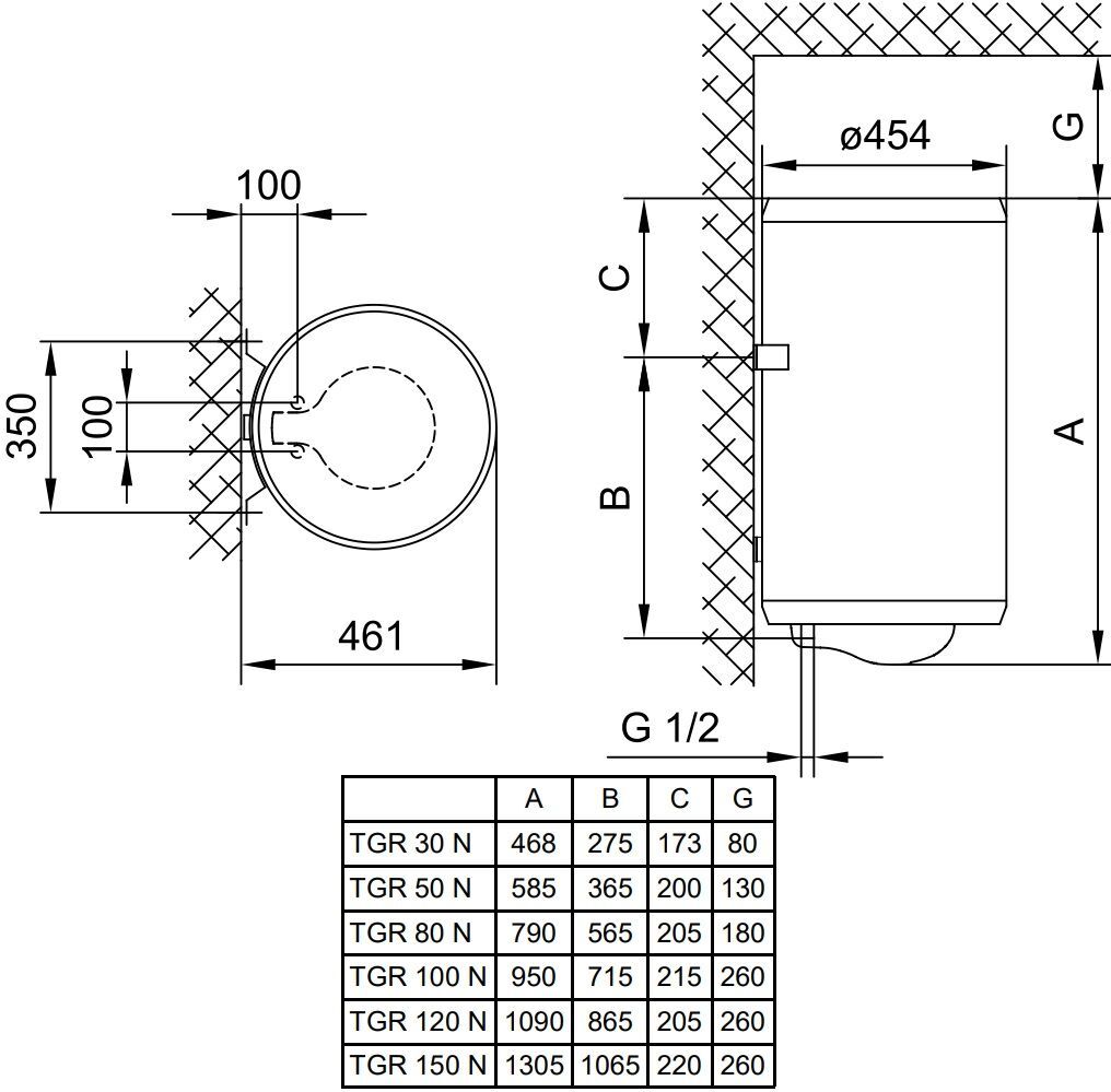 Опис Водонагрівач електр. TIKI круглий TGR, 50л, 2кВт, мех. кер-ння, C, білий, 700171