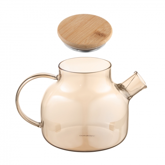 Заварник виготовлено з екологічного матеріалу – боросилікатного скла, яке не вбирає запахів, тому смак напою завжди залишатиметься незмінним. Матеріал вирізняється міцністю і стійкістю до перепадів температури, тож тривалий термін слугування і безпечне використання виробу гарантовано. Бамбукова кришка та золотистий відтінок скла додають виробу вишуканості. Об’єм моделі становить 1 000 мл. Це ліпший вибір для сімейних обідів, вечірок із друзями або для використання в офісі. Заварник згодиться для різних видів плит (газових, електричних, склокерамічних, галогенних), його можна підігрівати на помірному вогні та мити в посудомийній машині (крім бамбукової кришки).