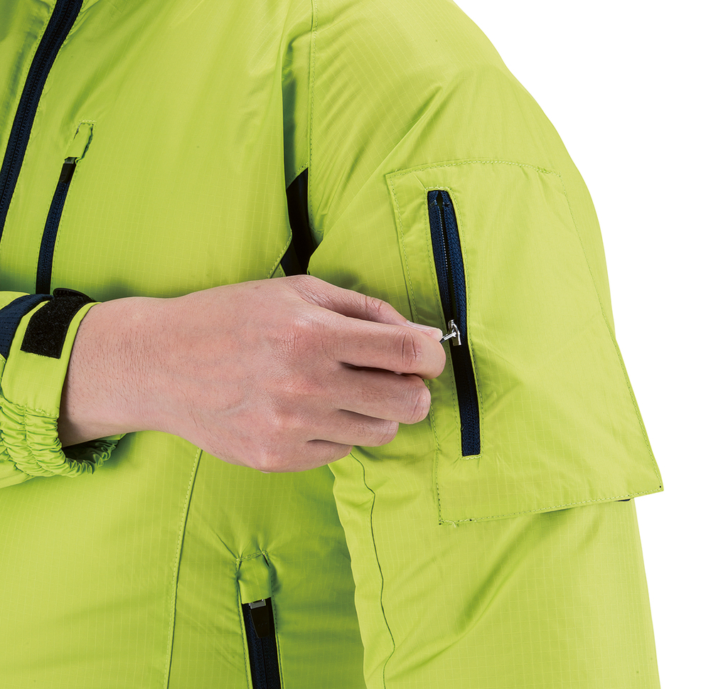 Куртка виготовлена з водовідштовхувальної та дихаючої поліефірної тканини, що робить її придатною для використання у складних погодних умовах. Передбачено п’ять кишень, у тому числі спеціальну сумку для батареї. Вага виробу становить лише 0.43 кг, що гарантує легкість і зручність у використанні протягом усього робочого дня.
