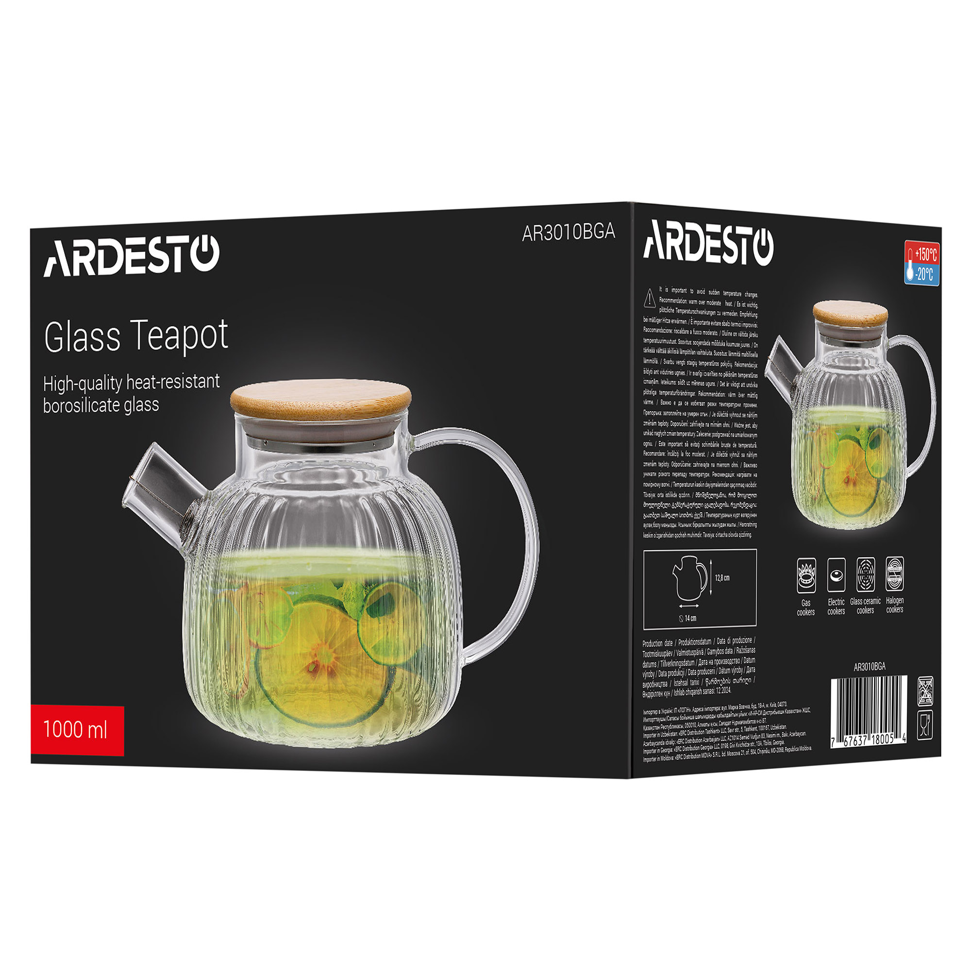 Заварник ARDESTO Iceberg 1000мл, боросилікатне скло, бамбук, прозорий