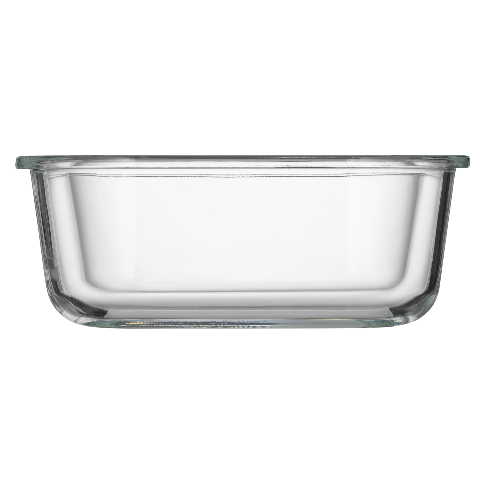 Контейнер об’ємом 1,2 л виготовлено з екологічного боросилікатного скла, яке гарантує довговічність виробу. Пластикова кришка забезпечує герметичність. Завдяки термостійкості виробу його можна залишати в морозильній камері, холодильнику, використовувати для підігрівання страв в мікрохвильовій печі або приготування в духовій шафі (без кришки). Розмір контейнера – 18,9 × 18,9 × 7,7 см. Виріб легкий у догляді – його можна мити в посудомийній машині. У контейнері зручно як зберігати страви або продукти вдома, так і брати з собою в офіс чи в подорож.