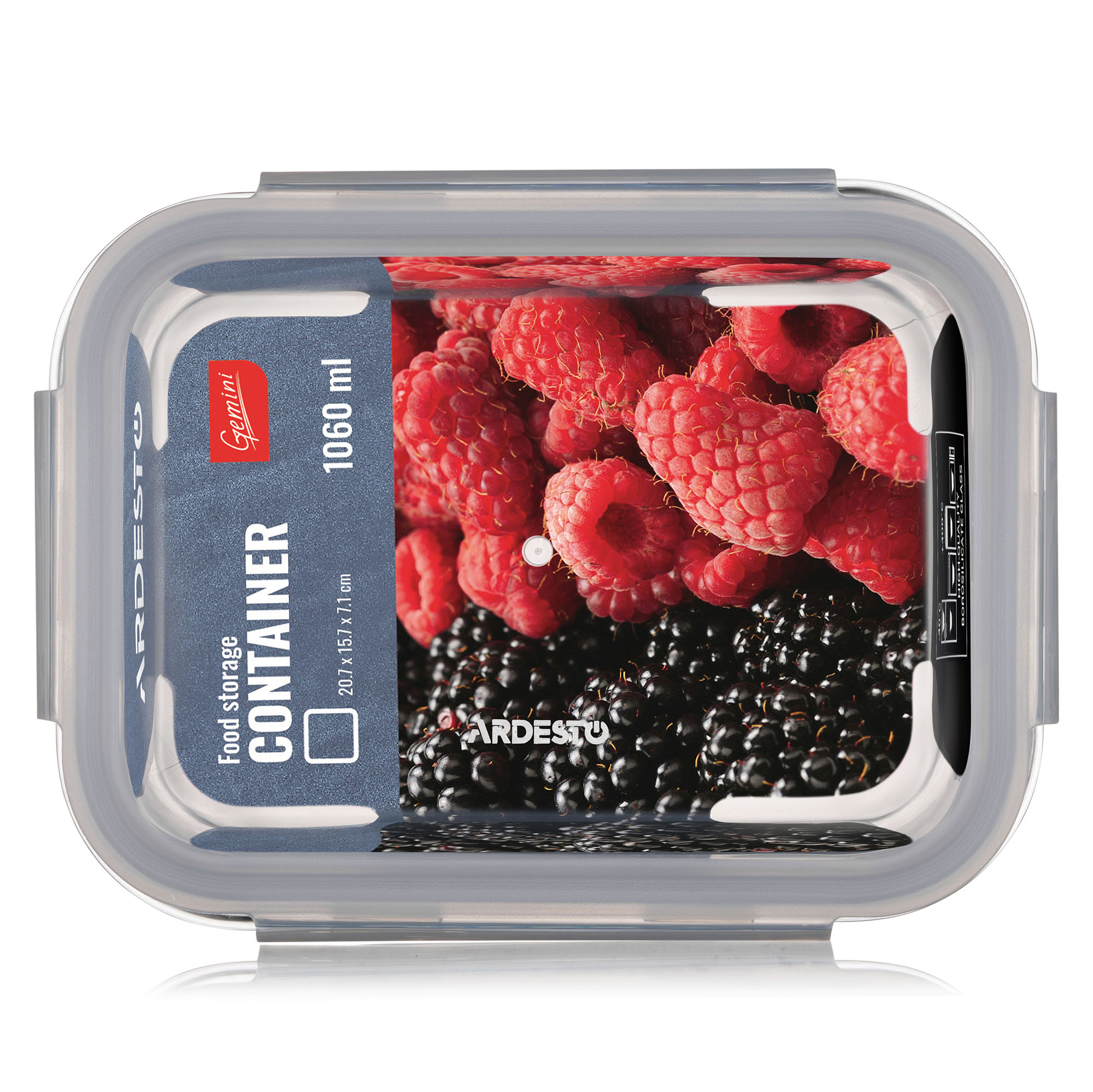 Контейнер для хранения пищевых продуктов Ardesto Gemini 1.06л, боросиликатное стекло, пластик, прямоугольный, прозрачный