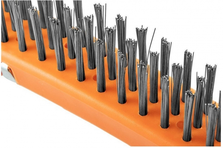 Щітка NEO 4-рядна дротяна (арт. 39-010) призначена для видалення іржі та інших забруднень з різних поверхонь. Щетина щітки виготовлена зі сталі, завдяки чому не деформується під час роботи. Двокомпонентна нековзна ручка запобігає вислизанню виробу з руки.