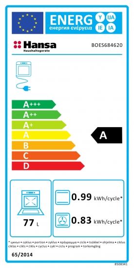 Духовка электр. Hansa, 60см, 77л, A, гриль, эмаль легкой очистки, диспл., черный