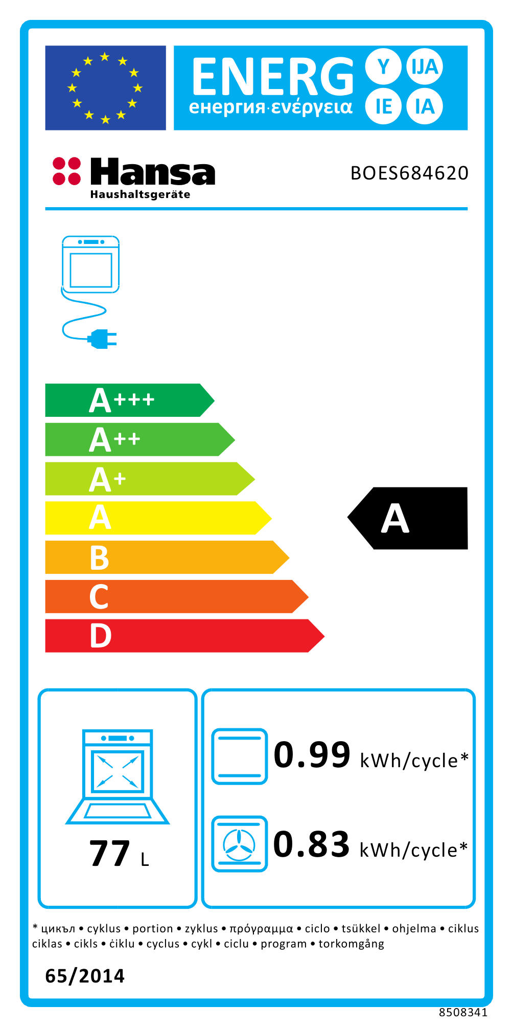 Hansa BOES684620 – електрична духова шафа з об'ємом 77 літрів, чорним дизайном та паровою системою очищення. Оснащена 9 режимами приготування, потужністю швидкого розігріву 3500 Вт і сенсорним керуванням із зручними натискно-тягнучими ручками. LED-дисплей, стандартні бокові напрямні, 3-скляні дверцята та клас енергоспоживання A забезпечують функціональність, безпеку й ефективність у повсякденному користуванні.
