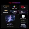 Кольорова передача дуже насичена: до 110 % sRGB, статична контрастність 1000:1, яскравість до 400 cd/м² та сертифікація HDR400 для глибших деталей і яскравості. Монітор підтримує AI-функції: Dynamic Shadow Boost та Dynamic Crosshair допомагають у темних сценах і прицілюванні.