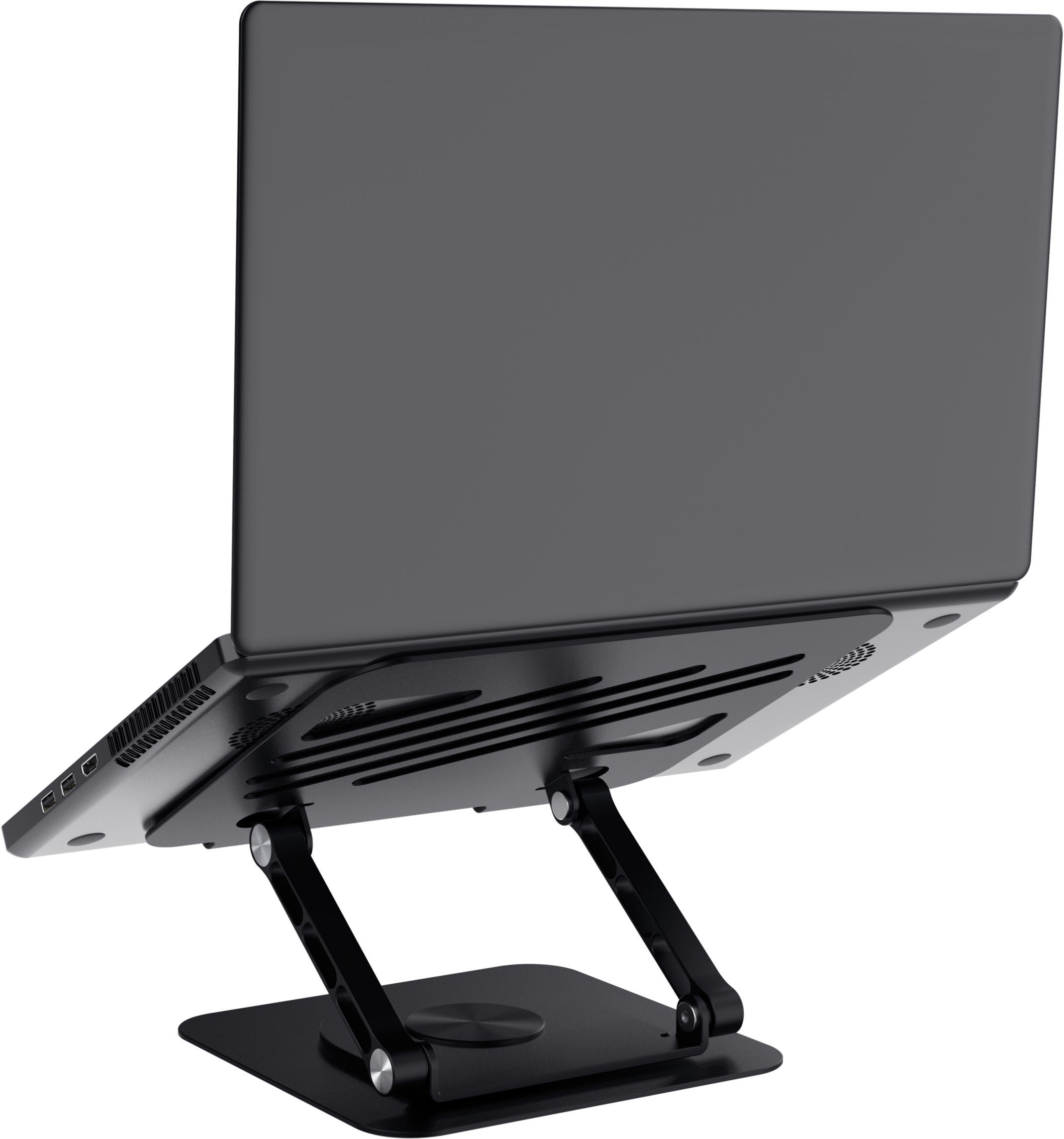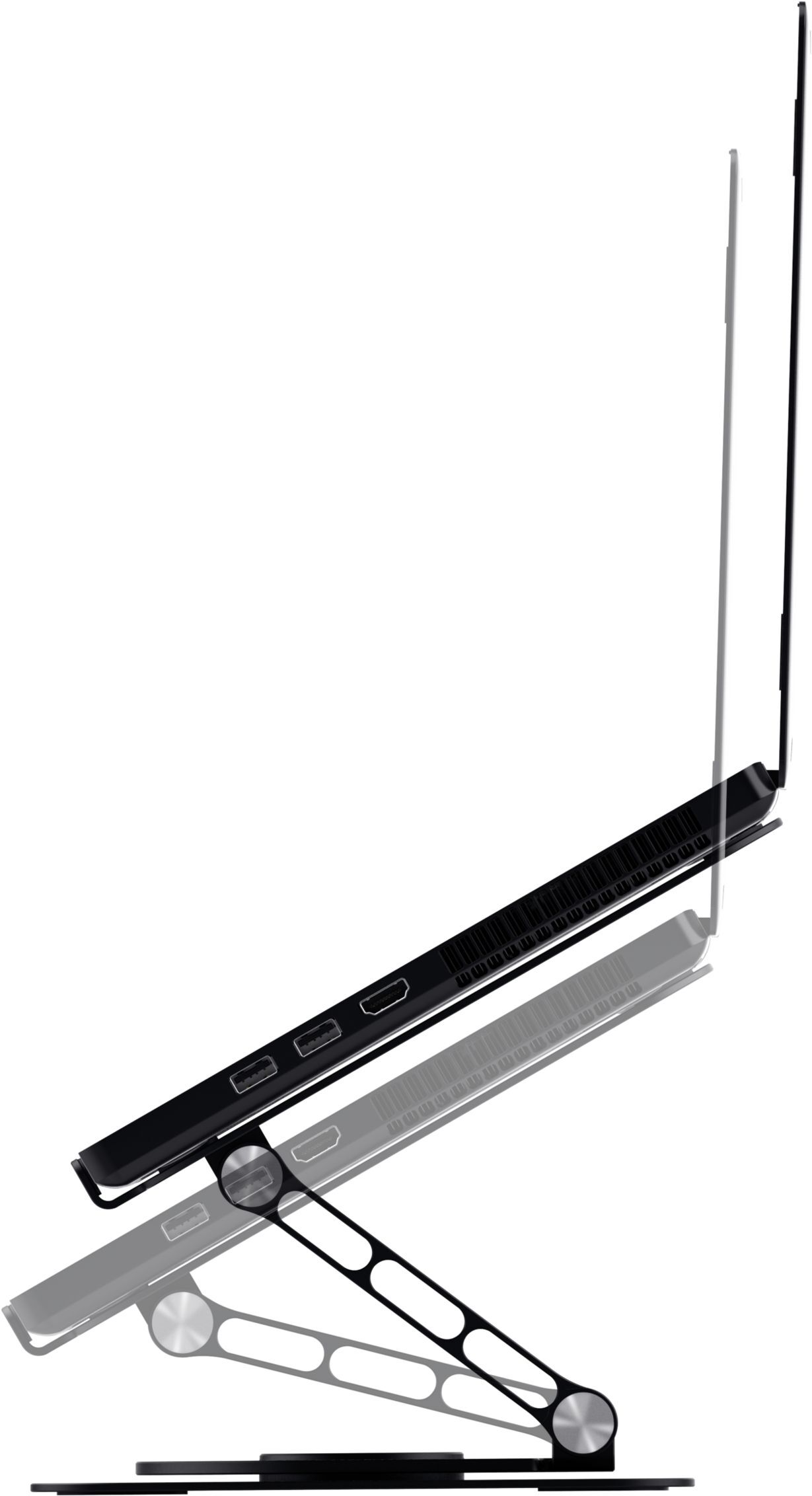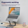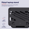 Поверхні снащені протиковзними гумовими наклейками, які захищають ноутбук від подряпин і забезпечують стійкість. Відкрита металева поверхня основи підтримує вентиляцію корпусу ноутбука, сприяючи охолодженню під час роботи