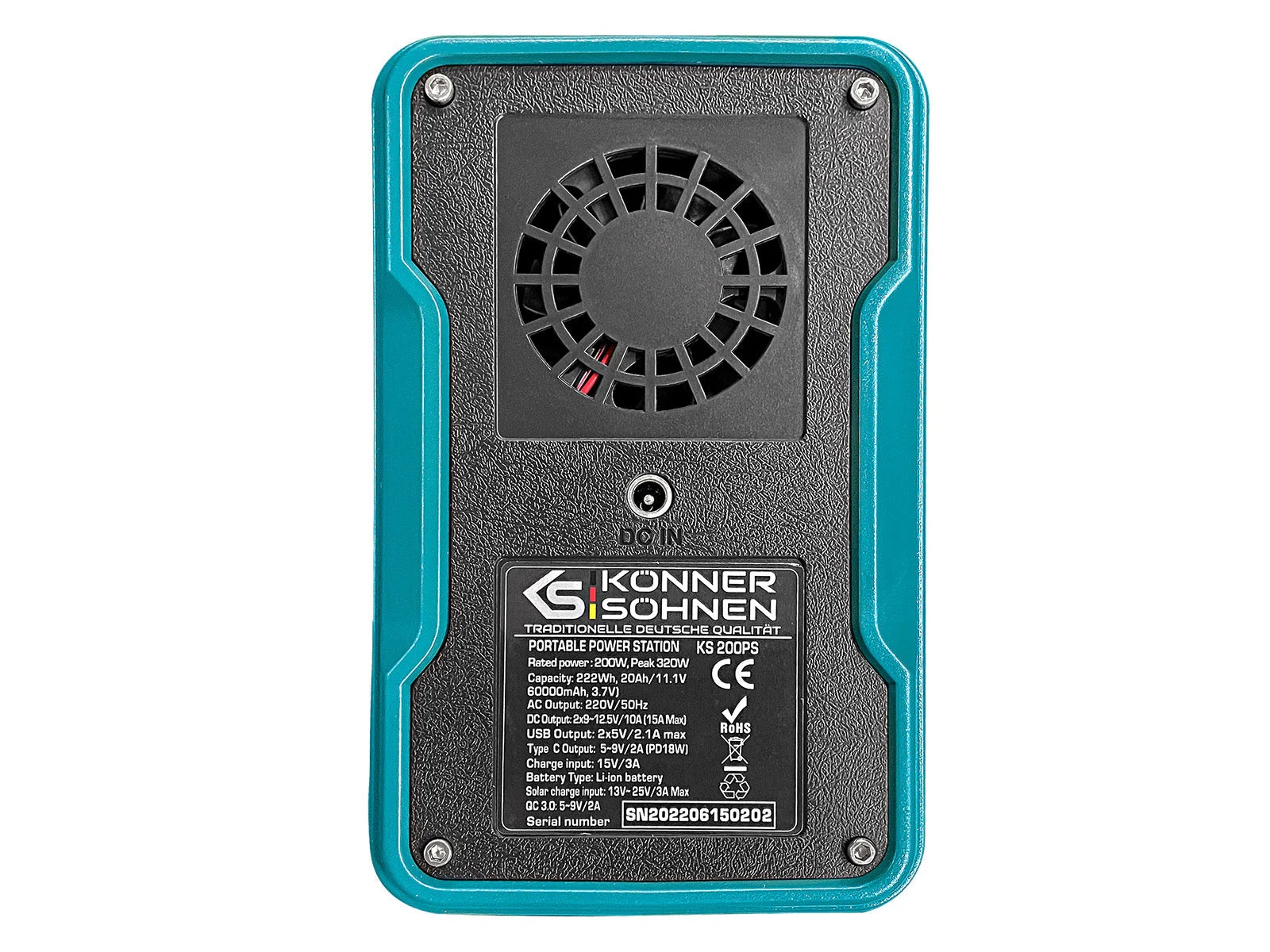Опис Портативна електростанція Konner&Sohnen KS 200PS, 200Вт, 222Вт/год, літій-іонна, 2.4кг