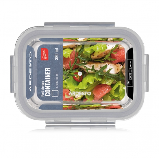 Контейнер для зберігання харчових продуктів Ardesto Gemini 0.38л, боросилікатне скло, пластик, прямокутний, прозорий