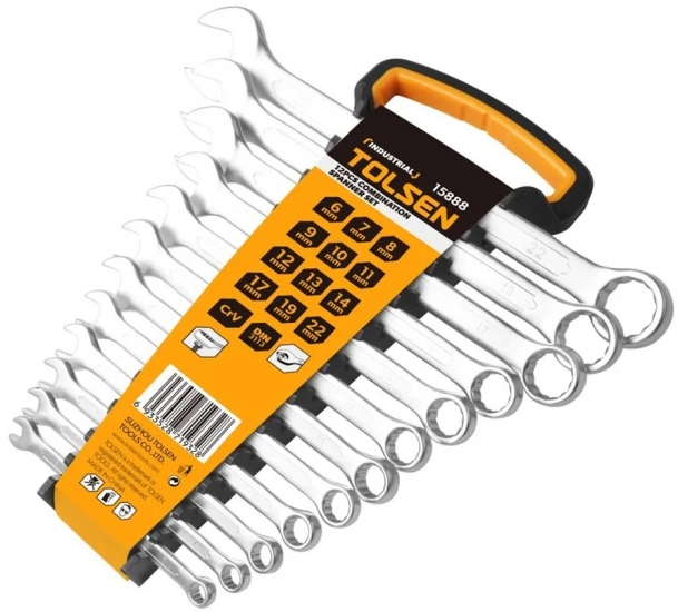 Набір комбінованих ключів Tolsen Профі із 12 інструментів розміром від 6 до 22 мм – це надійний вибір для професійного використання завдяки міцній конструкції з хром-ванадієвої сталі (CrV).