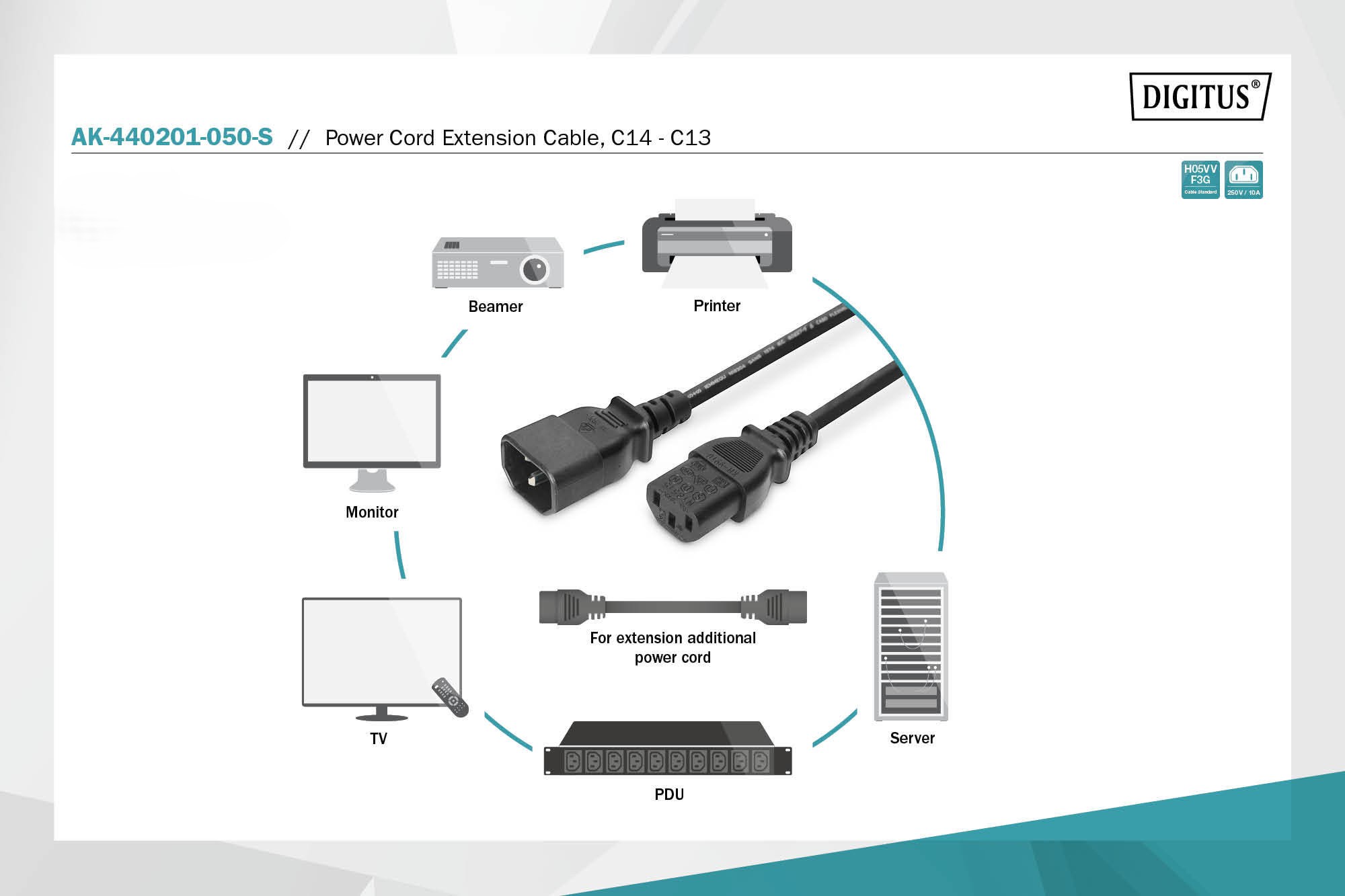 Сетевой кабель Digitus (C14/M - C13/F) 5.0m, black