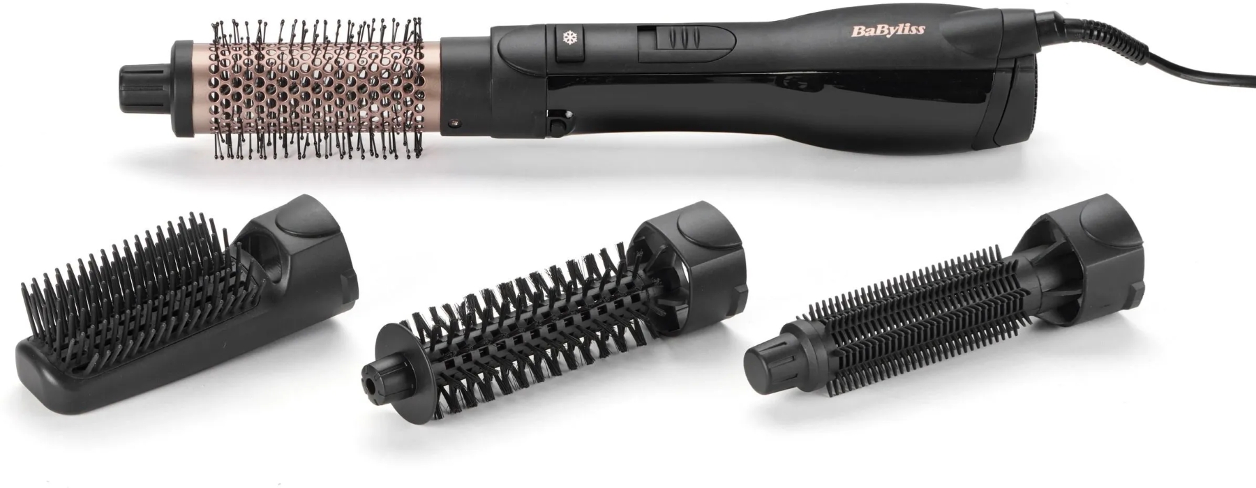 Опис Фен-щітка Babyliss Smooth Finish, 1200Вт, 3 режими, іоніз-я, хол. обдув, кераміка, чорний