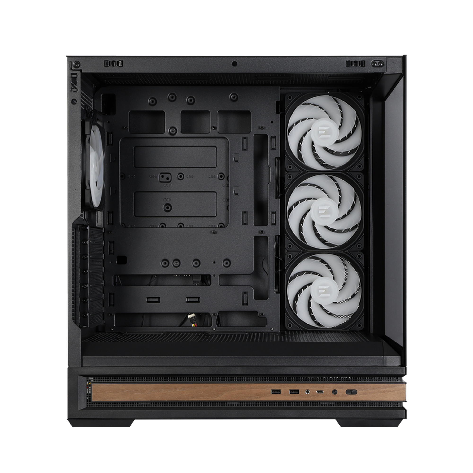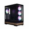 Передня та бічна панелі – загартоване скло зі зручним та практичним безгвинтовим кріпленням. Прозорий панорамний корпус підкреслює візуальний ефект вентиляторів ARGB і виглядає стильно.