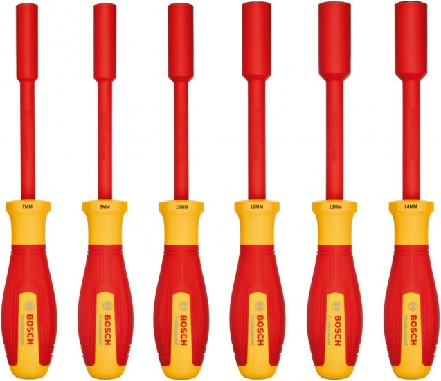 Як професійному майстру вам потрібні інструменти, які прості у використанні та відповідають усім законодавчим вимогам. За допомогою набору торцевих ключів Bosch Professional VDE - 6 шт ви зможете закручувати та відкручувати гайки із зовнішнім шестигранним профілем, навіть якщо ви несподівано контактуєте зі струмоведучими частинами.