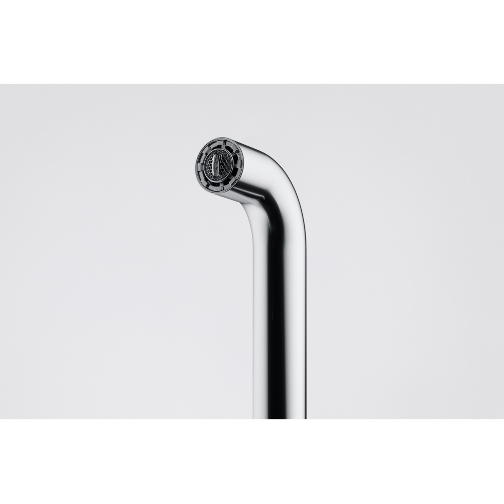 Кухонний змішувач Franke Lina U 115.0728.473 з поворотним невитяжним виливом і бічним важелем керування. Важіль відкривається вперед на кут 90°, тому можна здійснювати монтаж впритул до стіни. Кут повороту виливу складає, 360° тому водяний потік досягає більшої площі мийки, а також такий змішувач можна монтувати в острівні кухні. Аератор насичує водяний потік повітрям, завдяки чому краще працюють миючі засоби а також економиться вода.