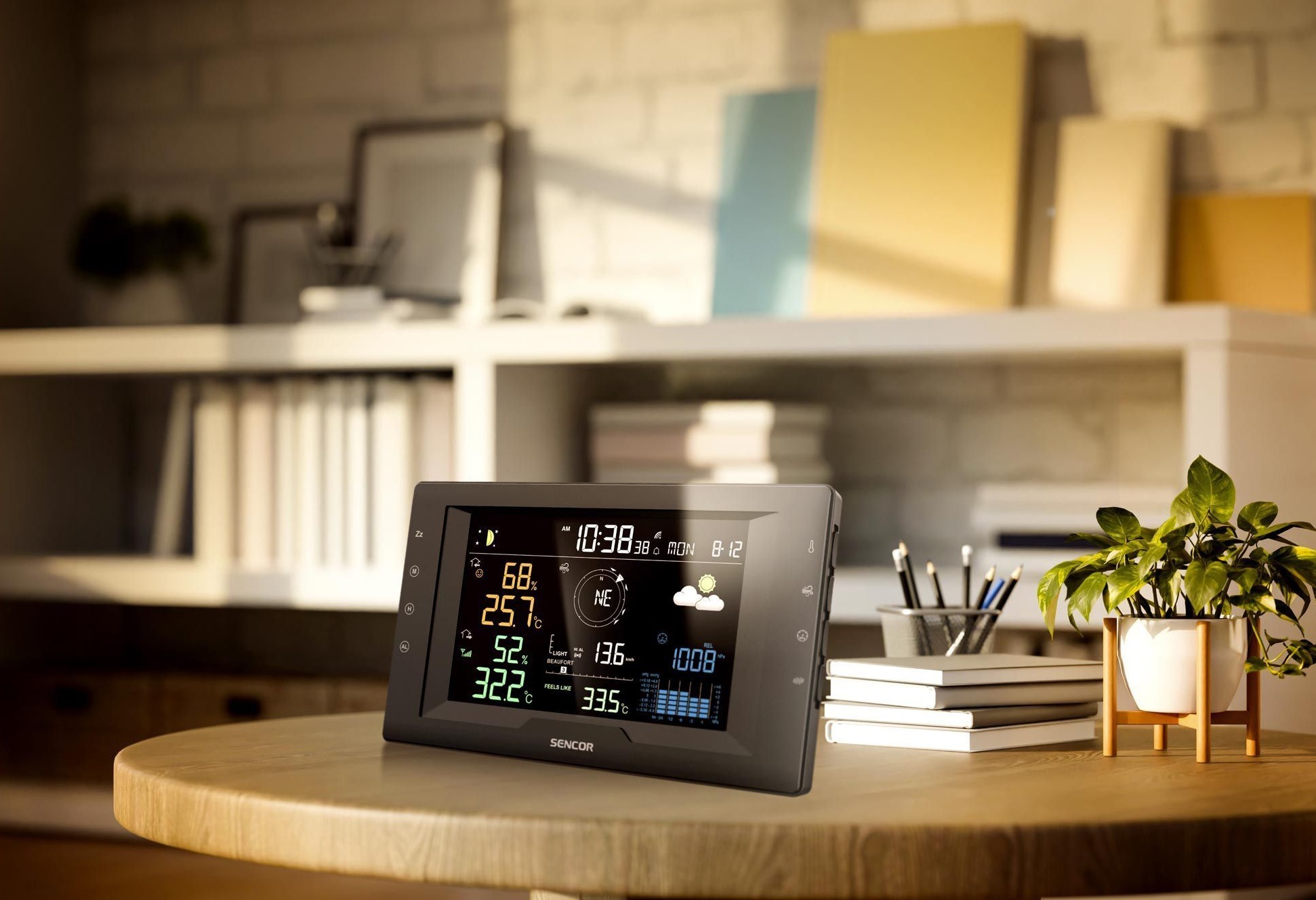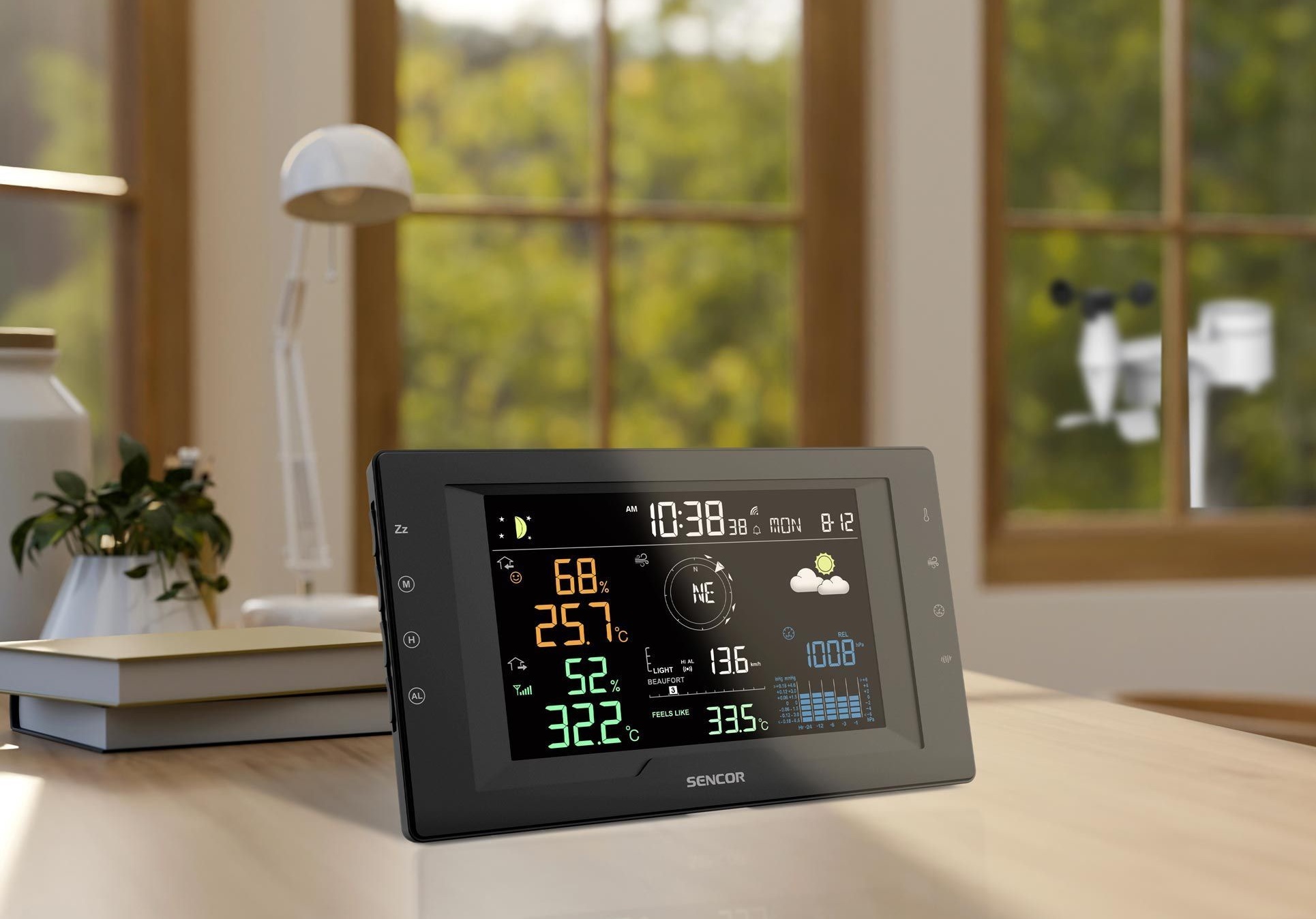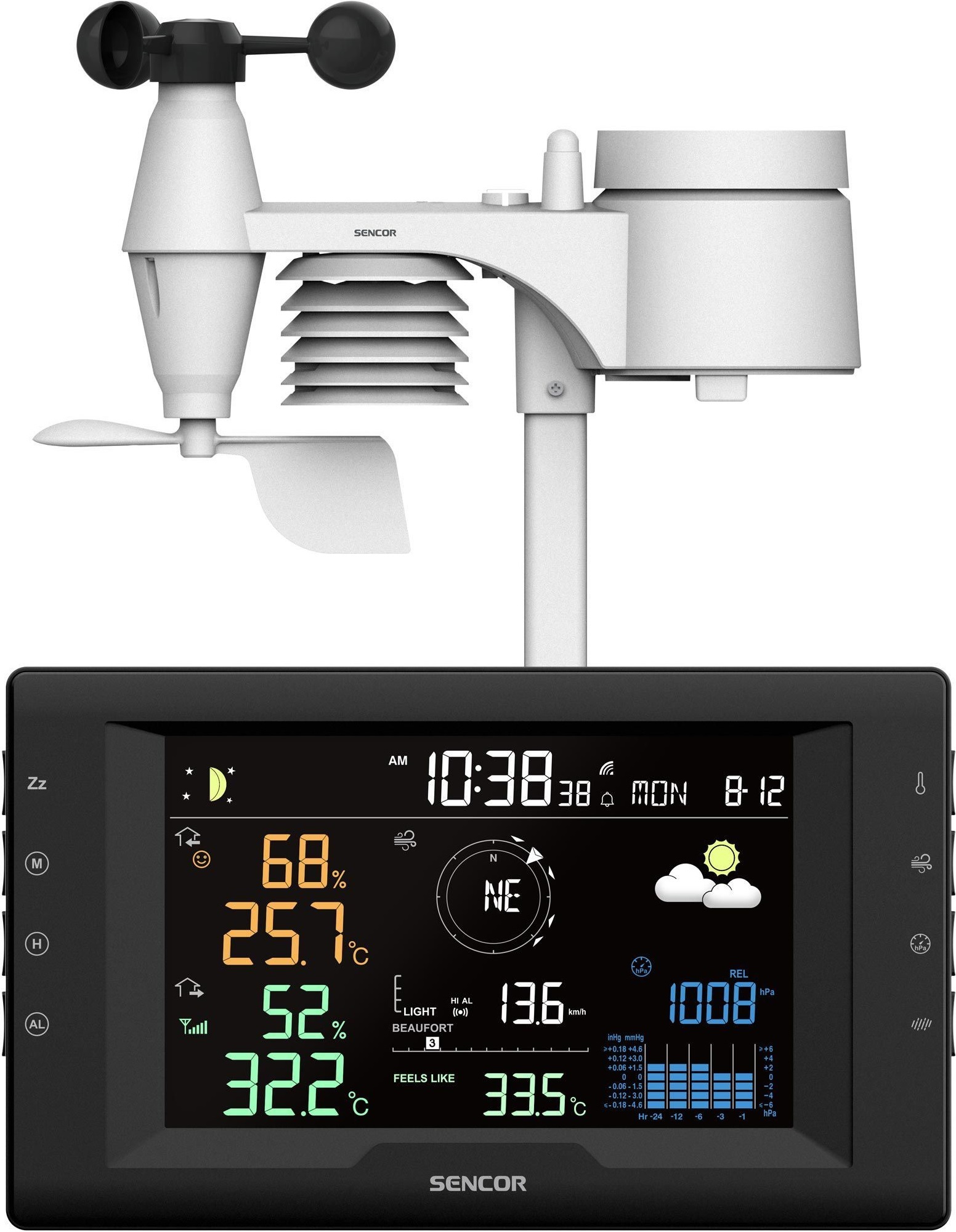 Головна - Побутова техніка, інструменти та товари для дому - Кліматична техніка - Метео прилади - Sencor - Метеостанція, внутр/зовн вимірювання, від мережі/CR2032x1+AAx3, темп-ра, вологість, час, прогноз погоди, атмосферний тиск, шв. вітру, чорний