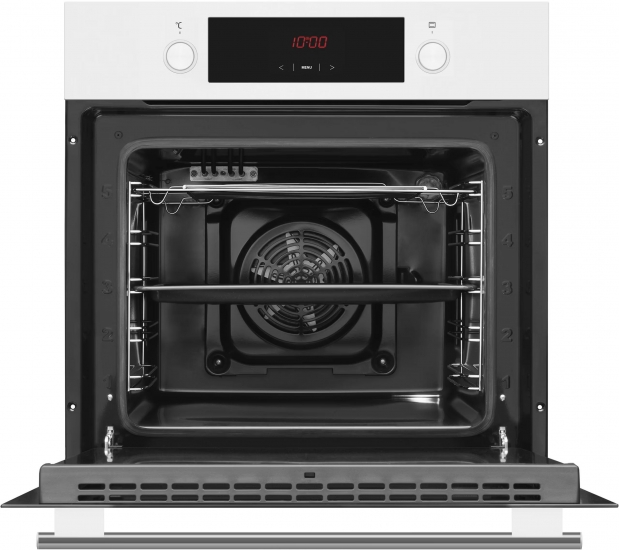 Духовка об’ємом 65 літрів оснащена 8 режимами приготування, включно з грилем, конвекцією, верхнім і нижнім нагріванням, швидким розігрівом та функцією розморожування. Внутрішнє рефлексне скло зберігає тепло всередині, а галогенне підсвічування забезпечує хороший огляд страв. Парове очищення допомагає швидко підтримувати чистоту.