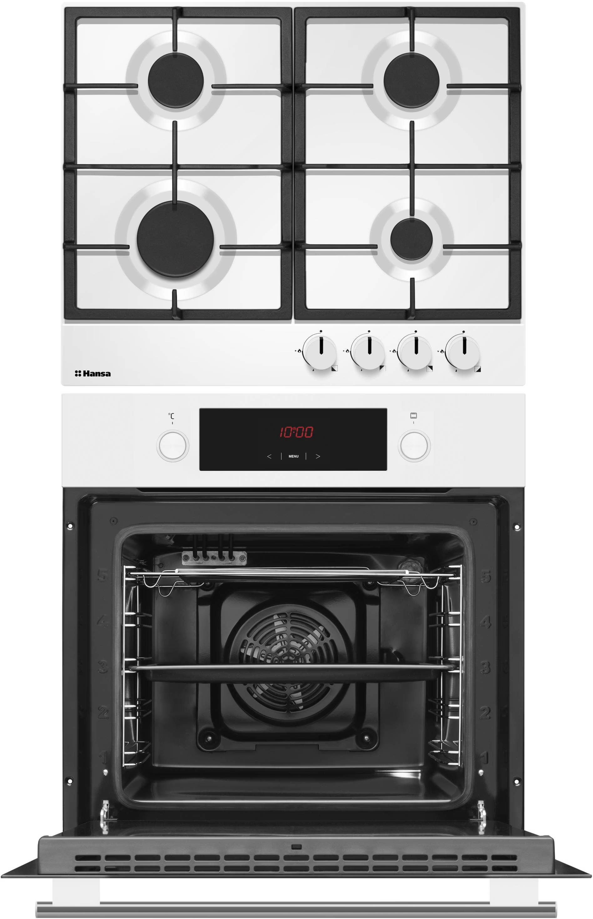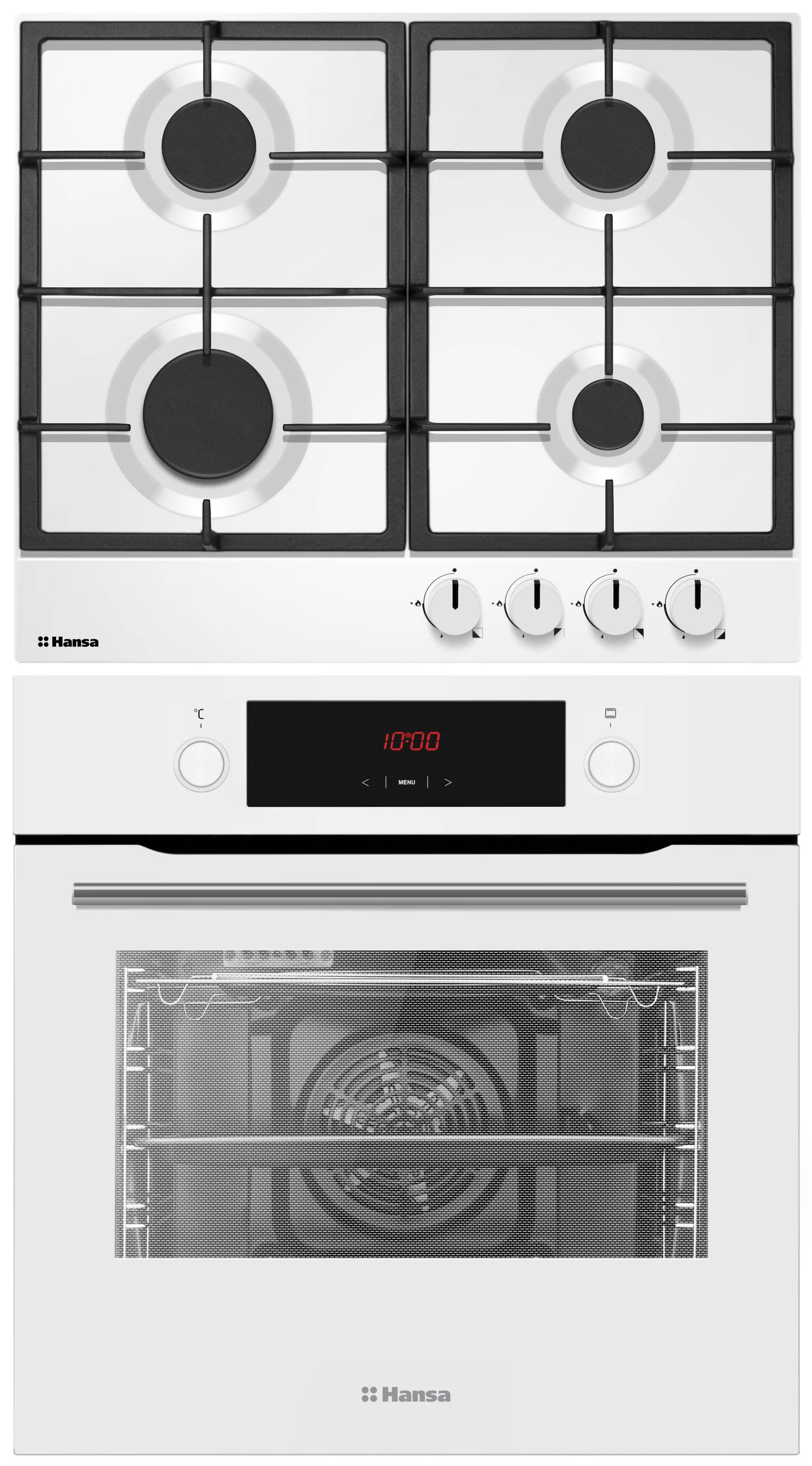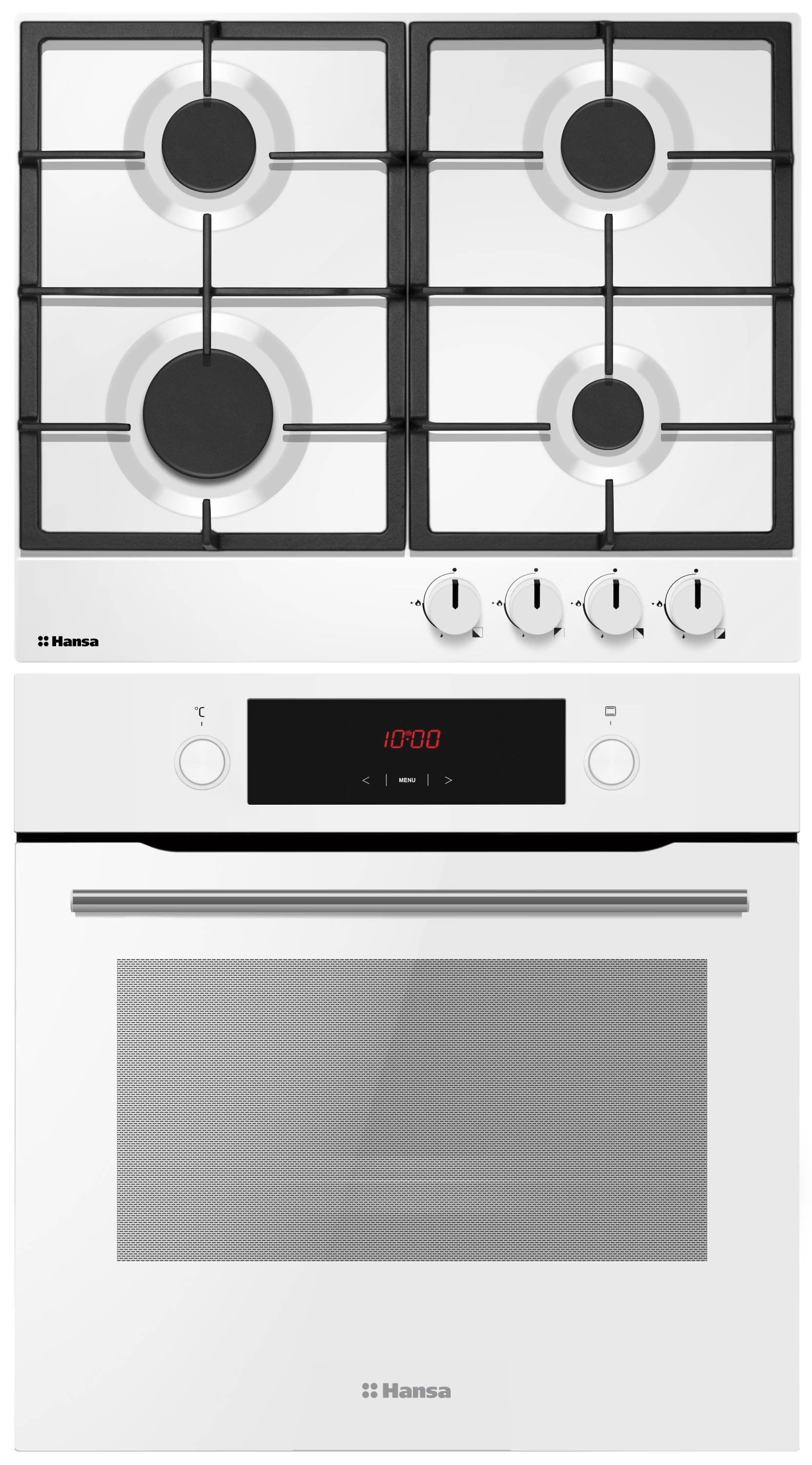 Комплект Hansa FCGW68329 об’єднує сучасну електричну духовку та надійну газову варильну поверхню. Завдяки білому кольору й лаконічному дизайну він легко впишеться в будь-який інтер’єр, додаючи кухні елегантності та функціональності.
