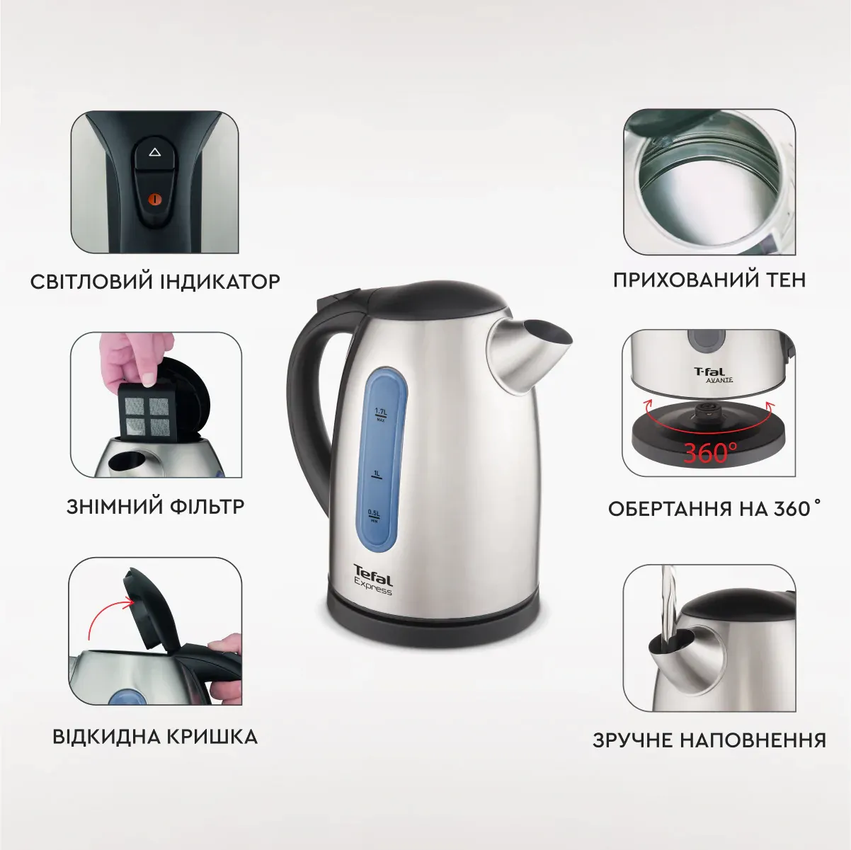 Електрочайник Tefal Express 2 1.7л, нерж. сталь, сірий