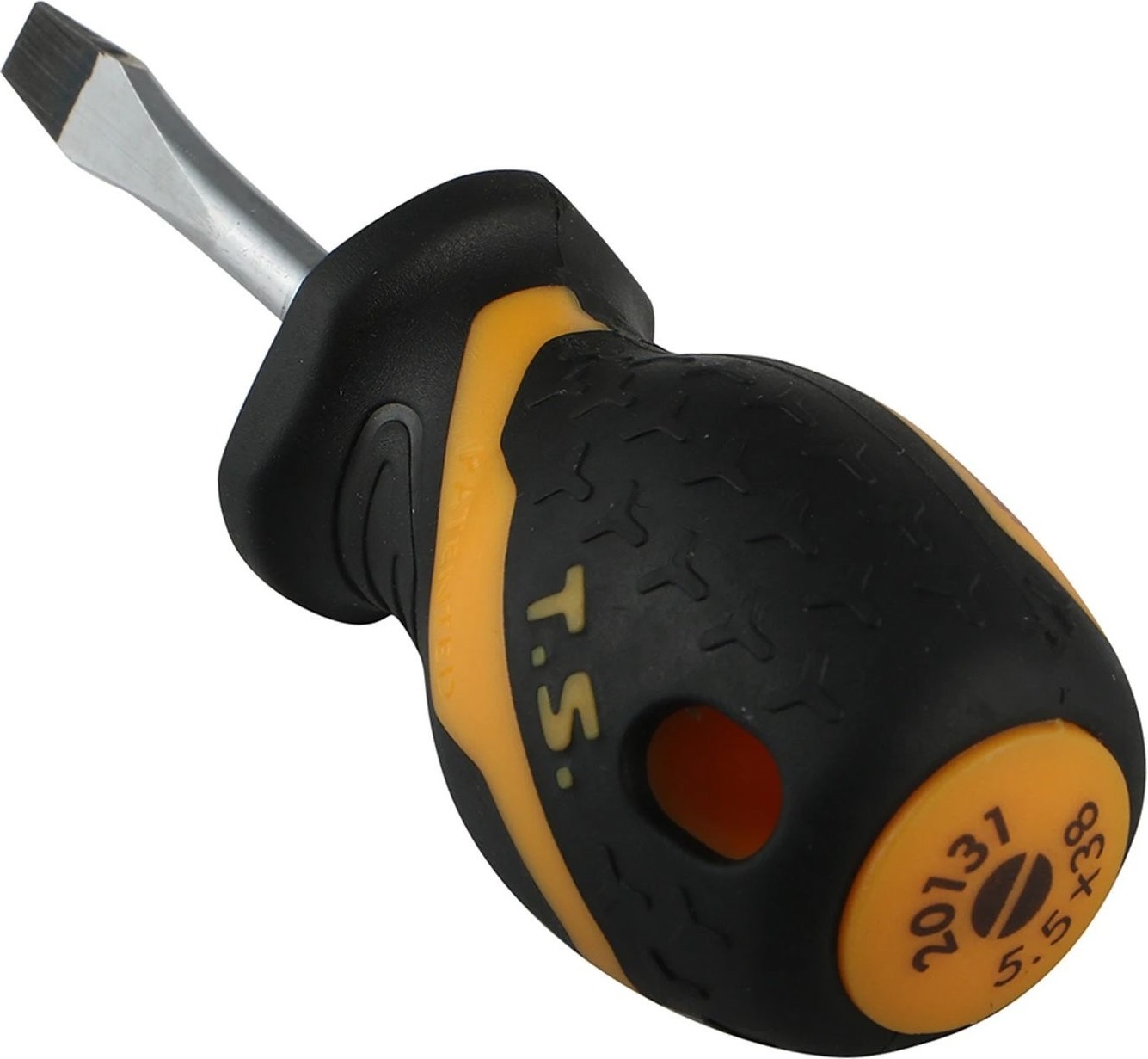 Tolsen Ерго SL5.5x38 мм — компактна плоска викрутка з лезом шириною 5.5 мм і довжиною робочої частини 38 мм. Виготовлена з міцної хромованадієвої сталі (CrV), що гарантує високу зносостійкість та довговічність. Ергономічна двокомпонентна ручка з протиковзкими вставками забезпечує комфорт під час роботи та точний контроль інструмента. Коротка конструкція дозволяє ефективно працювати у місцях з обмеженим простором.