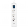 Удлинитель-фильтр сетевой 2E 3x Тип F, 3x1.5мм кв, 16A, 1xUSB-A, 1xUSB-C, с защитой от перенапряжения, 3м, белый