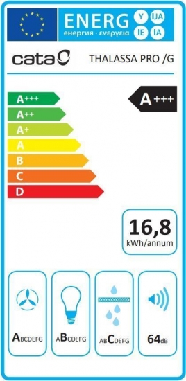Витяжка THALASSA PRO 800GBK належить до класу A+++, що гарантує мінімальне споживання електроенергії — лише 16,8 кВт·год/рік. Індекс енергоефективності становить 27,5, що робить модель надзвичайно економічною та придатною для щоденного використання.