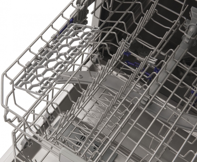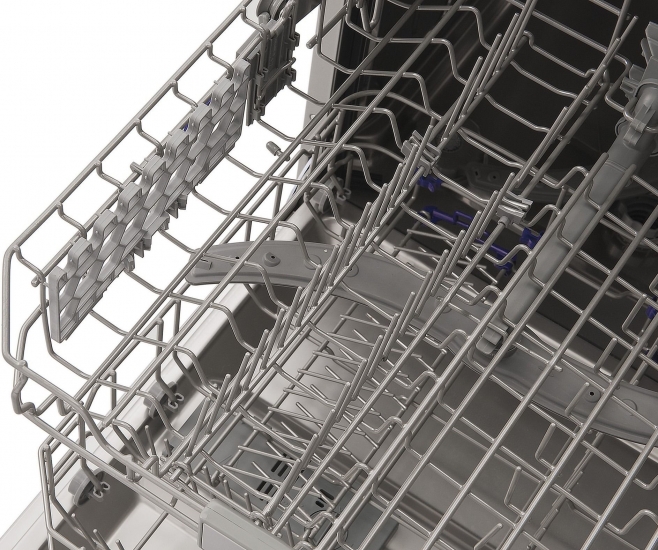 Передбачено можливість розкласти або скласти елементи кошика, щоб звільнити більше місця для завантаження. Якщо нам потрібно більше місця для каструль, сковорідок та мисок, складіть елементи в нижньому кошику. Це забезпечує надзвичайну зручність та гарантує ідеальні результати миття.