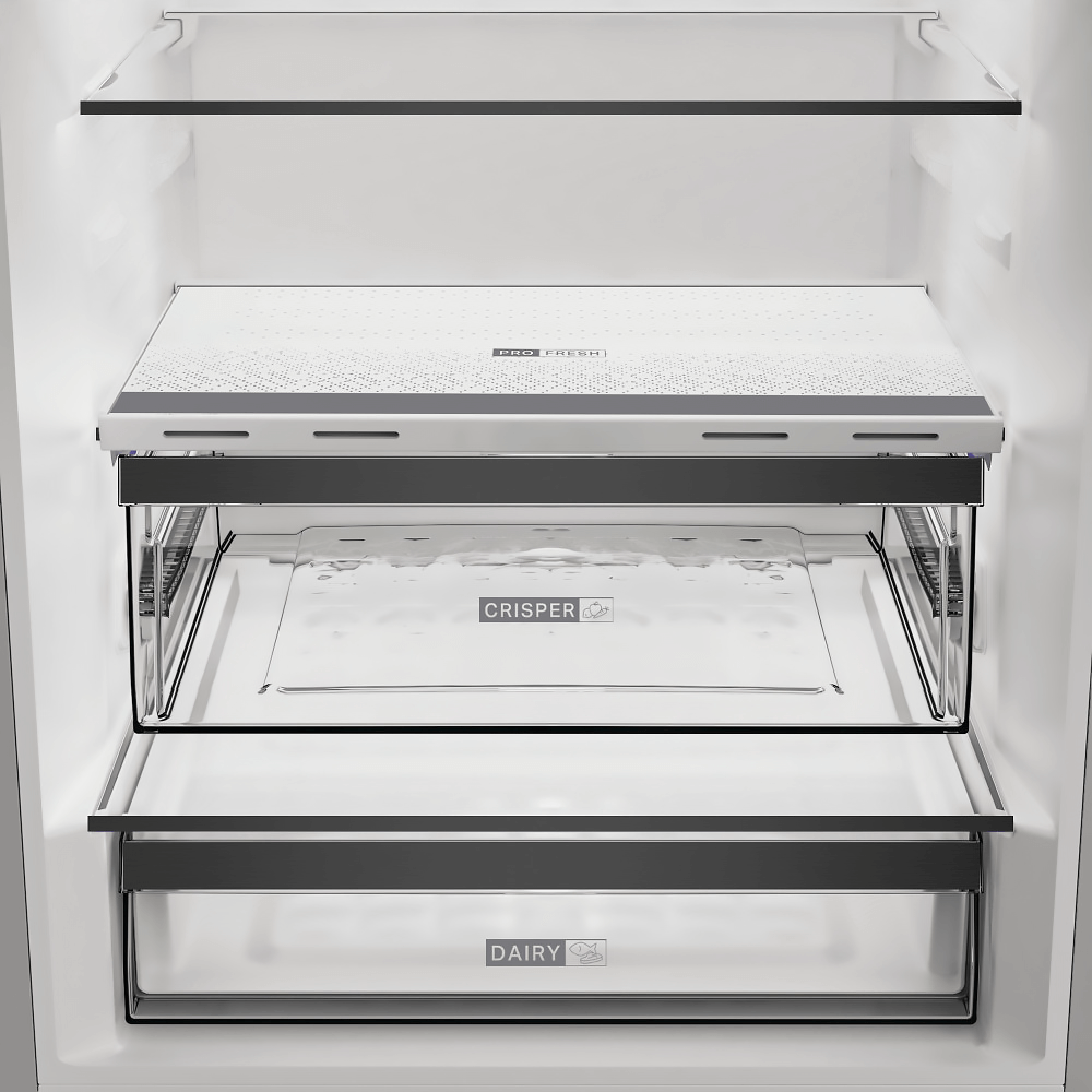 Whirlpool WHK2 6493 X5E UA — це стильний і надійний холодильник, створений для тих, хто цінує комфорт, ефективність і сучасний дизайн. Його елегантний корпус сірого кольору прекрасно вписується в будь-який кухонний інтер'єр, а LED-освітлення рівномірно освітлює внутрішній простір, забезпечуючи зручність при щоденному використанні. Світлодіоди не тільки економічні, але й підкреслюють сучасну естетику техніки.