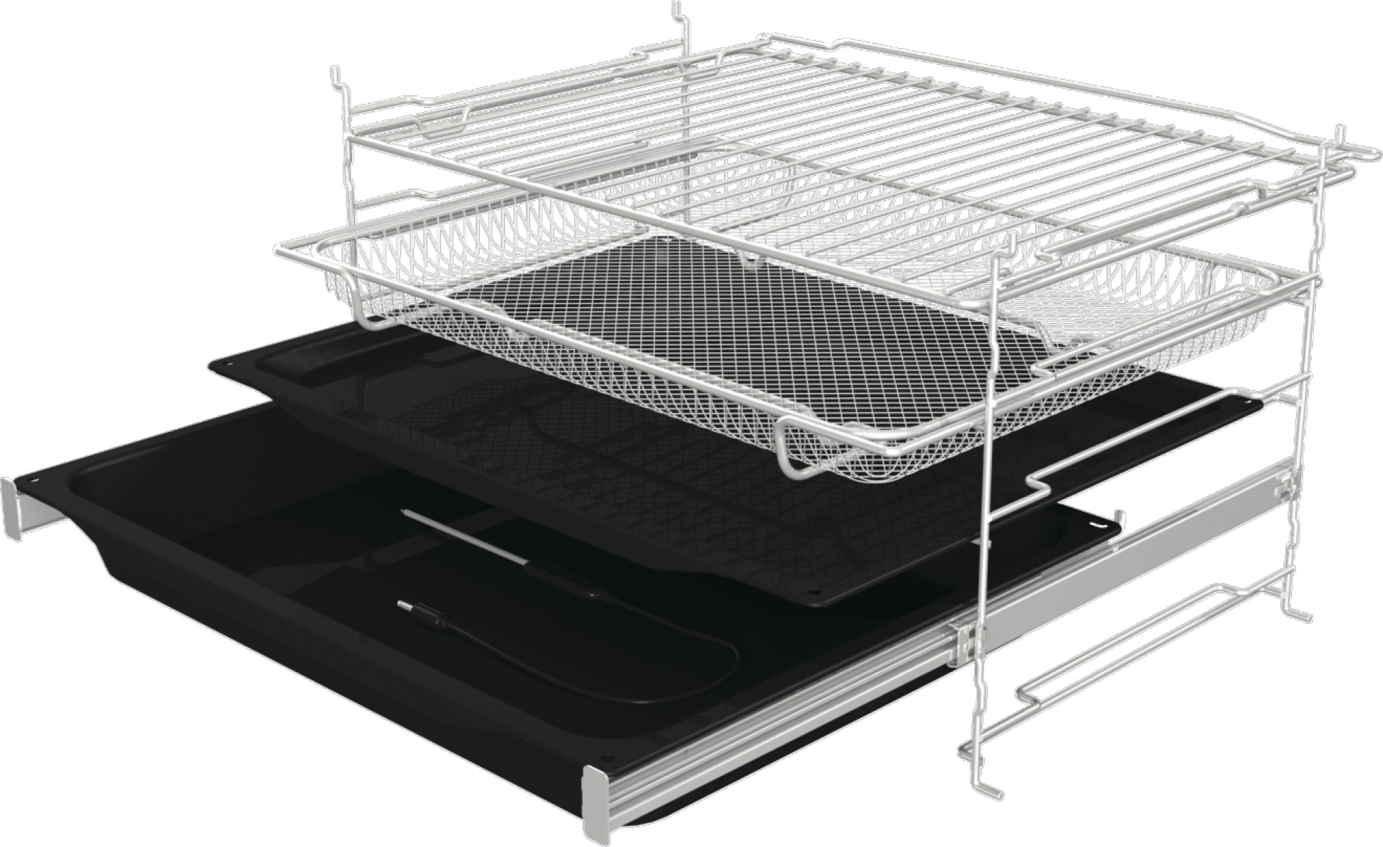 Насолоджуйтеся хрусткою, смачною смаженою їжею без зайвих калорій! Цей інтенсивний метод запікання гарячим повітрям створює ідеально хрустку золотисту скоринку без додавання жиру. Використовуючи спеціальне сітчасте деко, ви можете отримати ще кращі результати. Ідеальна функція для приготування малих шматків м’яса, риби, овочів і заморожених продуктів, як-от картопля фрі та курячі нагетси.