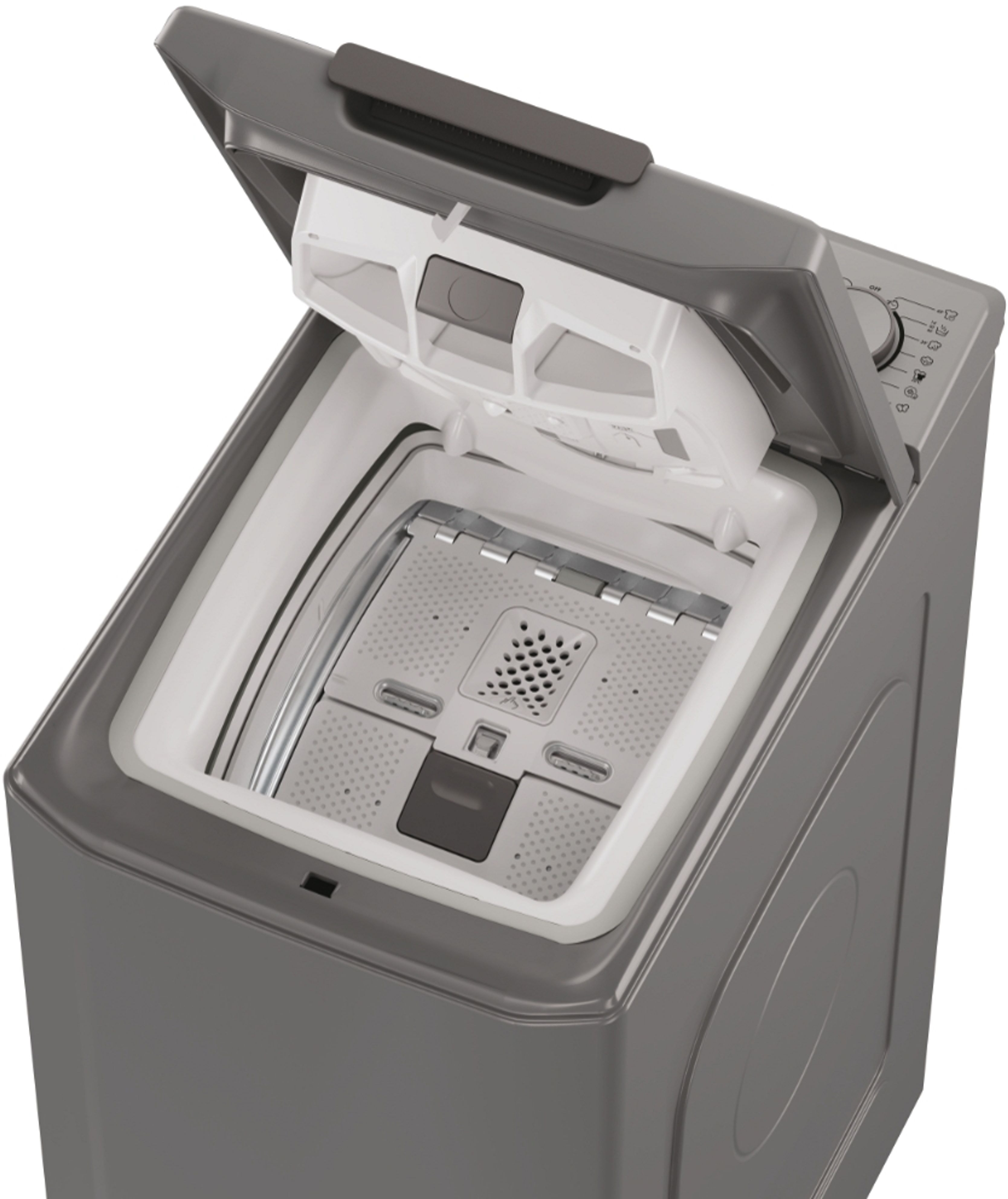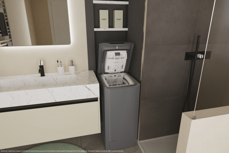 Завдяки вертикальному завантаженню модель займає мінімум місця, але при цьому вміщує до 7 кг білизни, що підходить для невеликих сімей або квартир. Потужний двигун забезпечує віджимання на швидкості до 1200 об/хв, дозволяючи речам швидше висихати після прання.