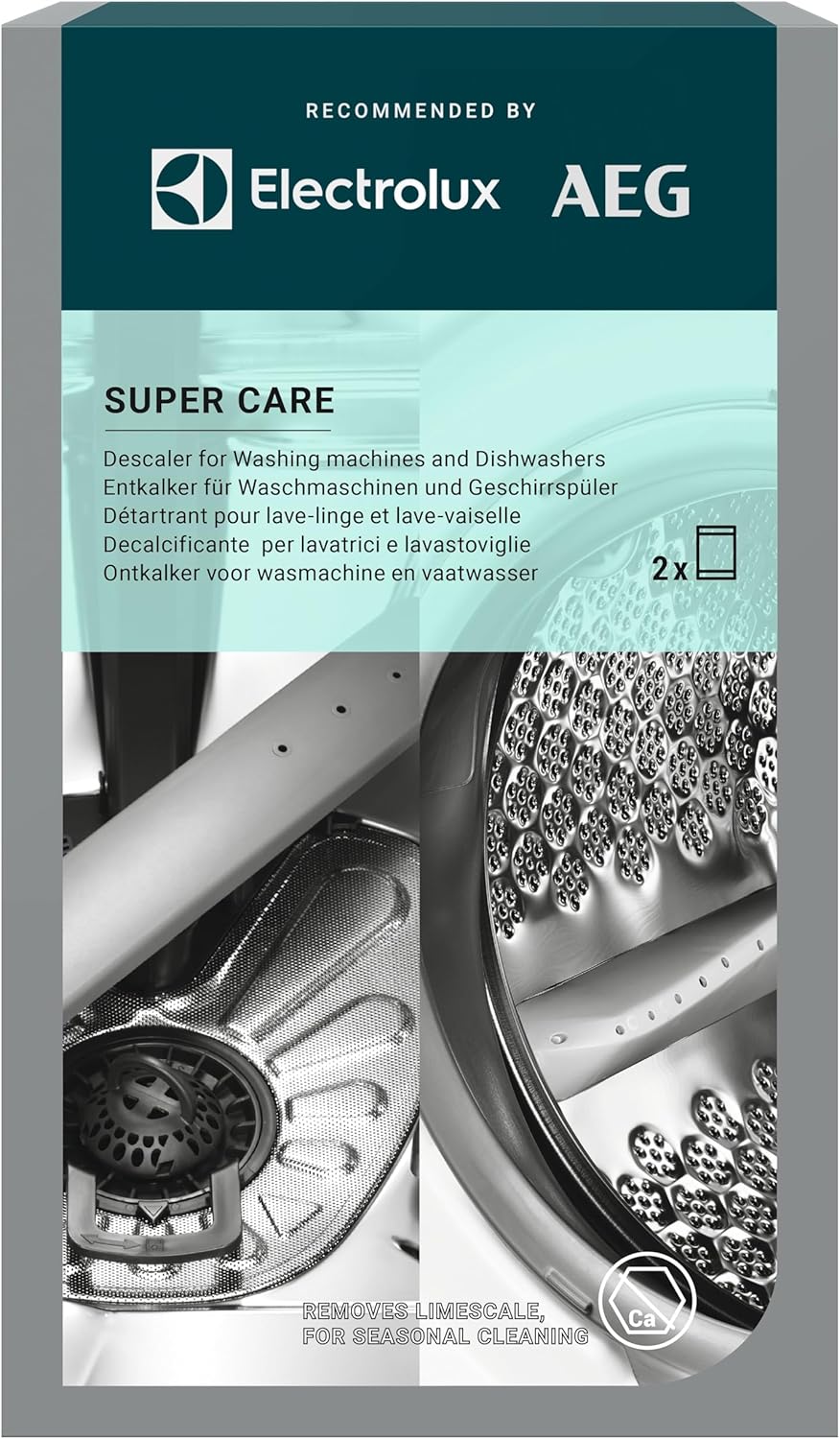 Electrolux Super Care M2GCP101 — засіб для видалення накипу (2х100 г), який очищає пральні та посудомийні машини від вапняного нальоту й запахів, підтримуючи їхню ефективну роботу та продовжуючи термін служби.