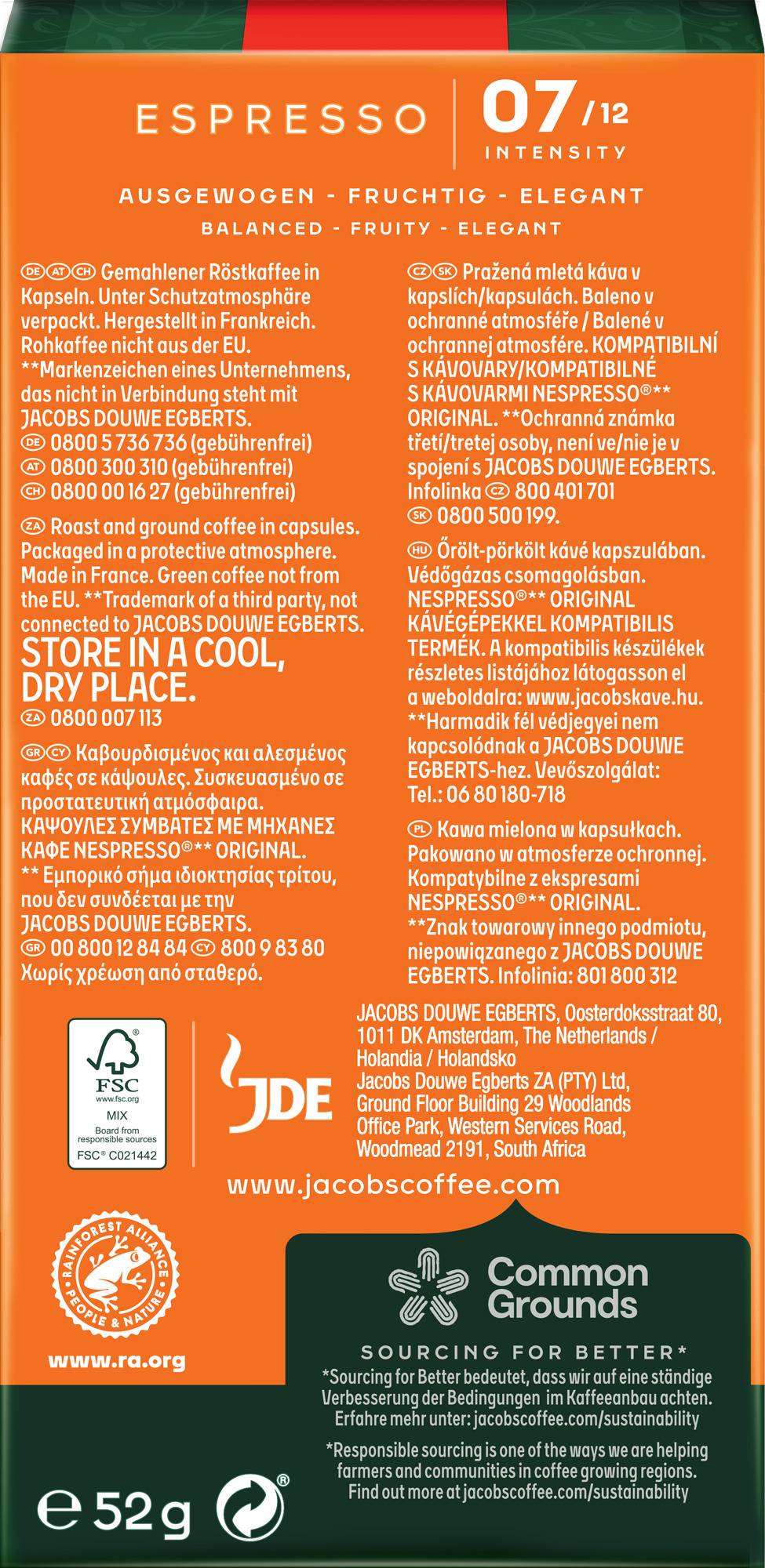 Кава Jacobs  капсули, Espresso Classico, купаж арабіка/робуста, 10шт, Nespresso