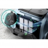 Об’ємний пластиковий контейнер на 3,3 л легко знімається і очищується, що робить експлуатацію економічною та гігієнічною. Пилосос має три гумові колеса для маневреності, а також вертикальне та горизонтальне положення для зберігання. Додатковий захист від перегріву та захисний гумовий бампер (Active Bumper) забезпечують безпеку техніки та довговічність використання.