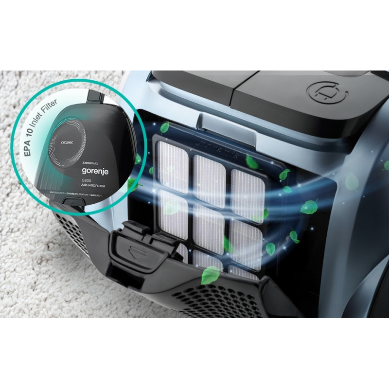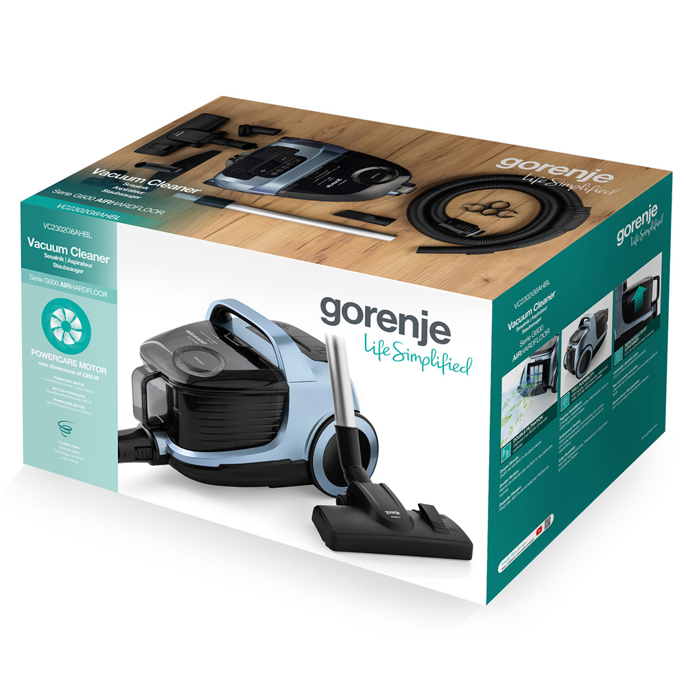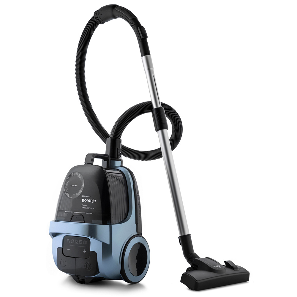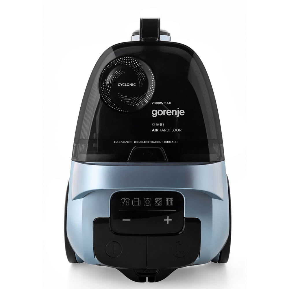 Опис Пилосос Gorenje контейнерний, 800Вт, конт пил -3.3л, HEPA, телескоп трубка, сенсорне упр, голубий