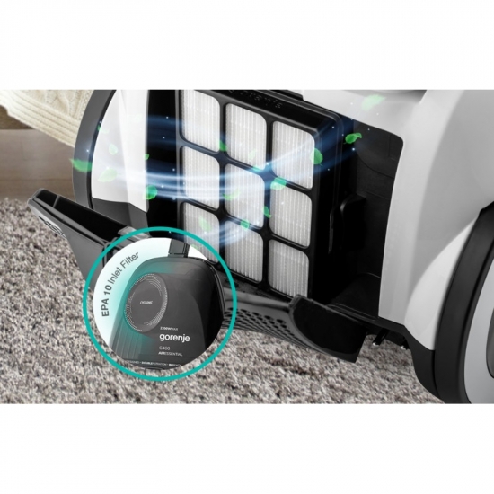 Опис Пилосос Gorenje контейнерний, 800Вт, конт пил -3.3л, HEPA, телескоп трубка, сенсорне упр, білий