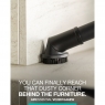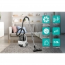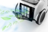 Пластиковий контейнер об’ємом 3,3 л легко очищується, а телескопічна металева трубка разом із гнучким шлангом забезпечує комфортну роботу. Управління здійснюється на приладі, а поворотна ручка додає зручності при прибиранні важкодоступних місць. Захисний гумовий бампер (Active Bumper) оберігає меблі від пошкоджень.