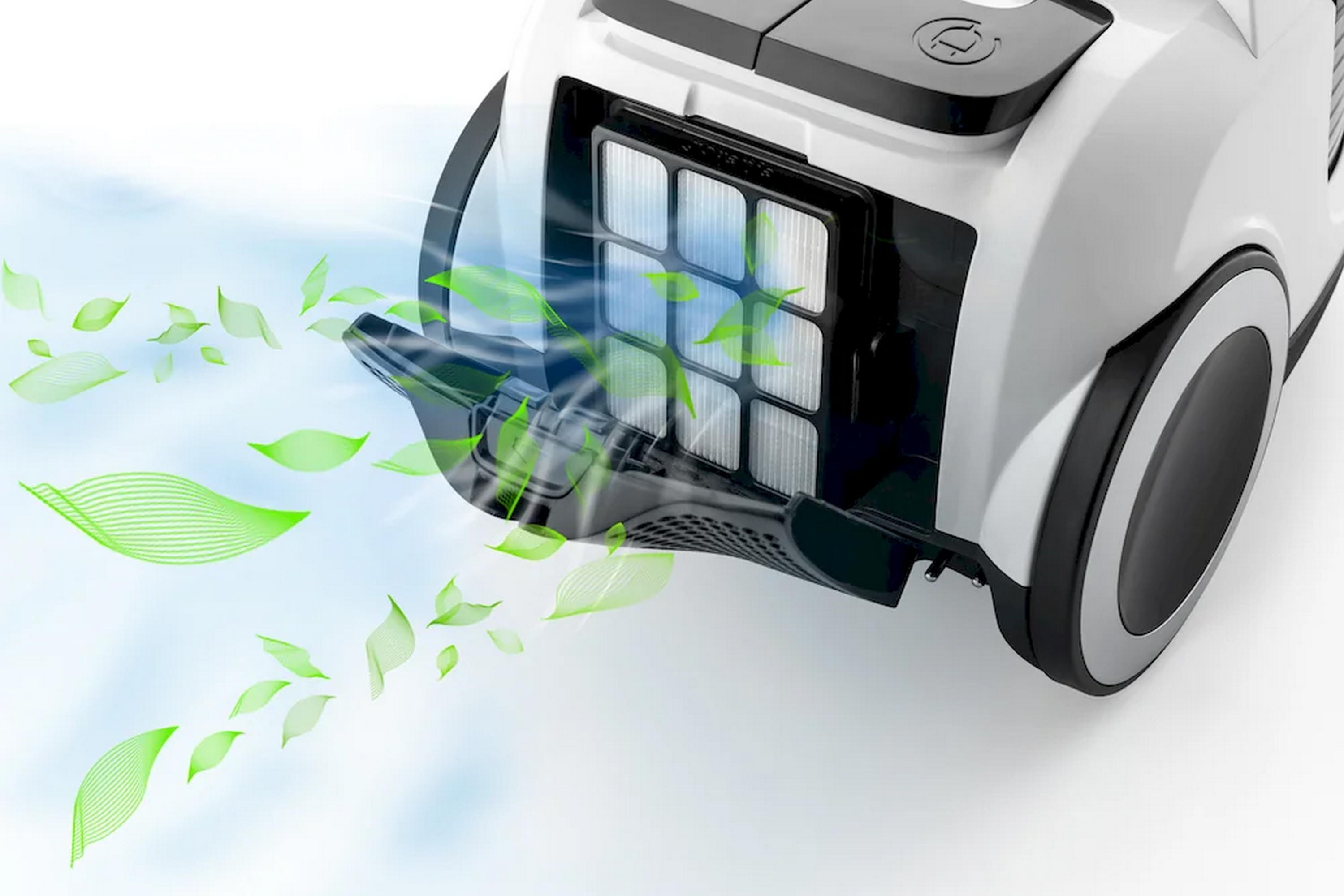 Пилосос AIRESSENTIAL оснащений двигуном потужністю 2200 Вт і силою всмоктування 330 Вт, що забезпечує ефективне прибирання будь-яких поверхонь. Потік повітря 33,3 л/сек гарантує високу продуктивність прибирання пилу та дрібного сміття.